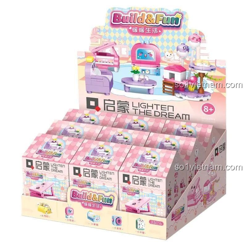Mẹ ơi, có phải bé gái nhà mình luôn ao ước có một thế giới nhỏ xinh, nơi bé có thể tự do sắp đặt và trang trí theo ý thích không ạ? Thay vì một ngôi nhà búp bê đắt đỏ và cồng kềnh, hãy cùng bé bắt đầu hành trình kiến tạo không gian mơ ước từ những món đồ vật nhỏ xinh nhất với bộ sưu tập hộp mù Enlighten 35016 – Cuộc Sống Ấm Áp. Đây không chỉ là một món đồ chơi, mà là cả một thế giới sáng tạo đang chờ bé khám phá. Mỗi chiếc hộp nhỏ xinh là một mảnh ghép của một căn phòng ấm cúng, từ phòng khách, phòng ngủ, phòng tắm đến nhà bếp. Bé sẽ được trải nghiệm niềm vui bất ngờ khi mở từng hộp, không biết món đồ nội thất dễ thương nào đang chờ đợi mình bên trong. Đó có thể là chiếc sofa êm ái, cây đàn piano du dương hay thậm chí là chiếc bồn tắm siêu hiếm. Hành trình sưu tập và xây dựng ngôi nhà tí hon này chắc chắn sẽ là một kỷ niệm tuổi thơ ngọt ngào và đáng nhớ cho con.