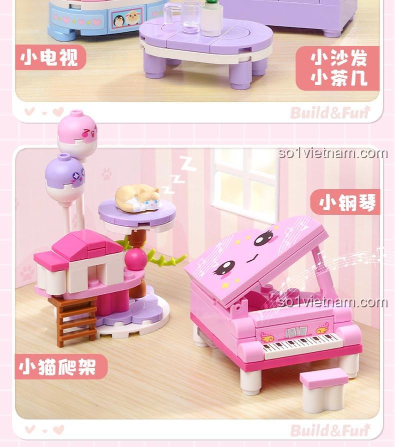 🎀 Thiết kế siêu cưng, màu sắc ngọt ngào của bộ lắp ghép Đồ chơi nhà búp bê