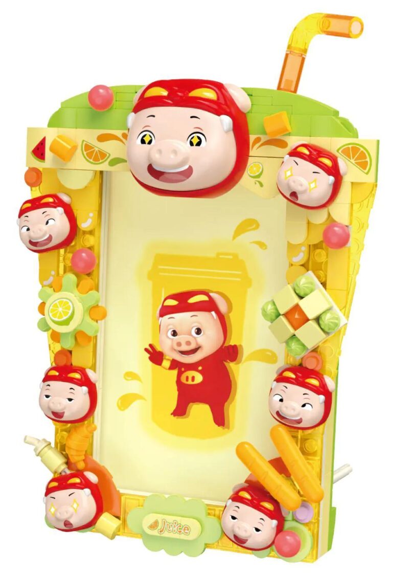 Điểm khiến bộ xếp hình JK6816 trở nên khác biệt chính là thiết kế ‘2 trong 1’ cực kỳ thông minh và đáng yêu. Nhìn từ xa, ai cũng sẽ nghĩ đây là một ly trà sữa trân châu mát lạnh với màu vàng tươi của xoài, màu xanh của kiwi, điểm xuyết những viên trân châu hồng xinh xắn. Nhưng khi lại gần, bé sẽ khám phá ra bí mật: đó là một chiếc khung ảnh có thể chứa tấm hình 6 inch! Từng chi tiết nhỏ như lát cam, ống hút, và đặc biệt là các biểu cảm tinh nghịch khác nhau của chú heo GG Bond được tái hiện vô cùng sống động, tạo nên một tổng thể hài hòa và bắt mắt. Với kích thước sau khi lắp ráp là 20.6cm (cao) x 14.4cm (dài) x 10.4cm (rộng), mô hình này vừa vặn để trở thành một điểm nhấn xinh xắn trên bàn học, kệ sách hay tủ đầu giường của bé. Màu sắc chủ đạo Vàng và Xanh lá cây tươi tắn, tràn đầy năng lượng, chắc chắn sẽ làm bừng sáng không gian riêng của công chúa nhỏ nhà mình.