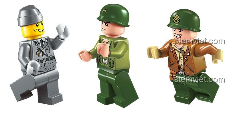Bộ lắp ráp Enlighten 1703 Xe Jeep quân sự và xe mô tô trinh sát có bánh xe di chuyển linh hoạt, súng máy trên xe Jeep có thể xoay, và đi kèm 3 lính minifigure với trang phục chi tiết. Những tính năng này giúp bé dễ dàng nhập vai, tạo ra các kịch bản chiến đấu kịch tính và phát triển khả năng kể chuyện của mình.