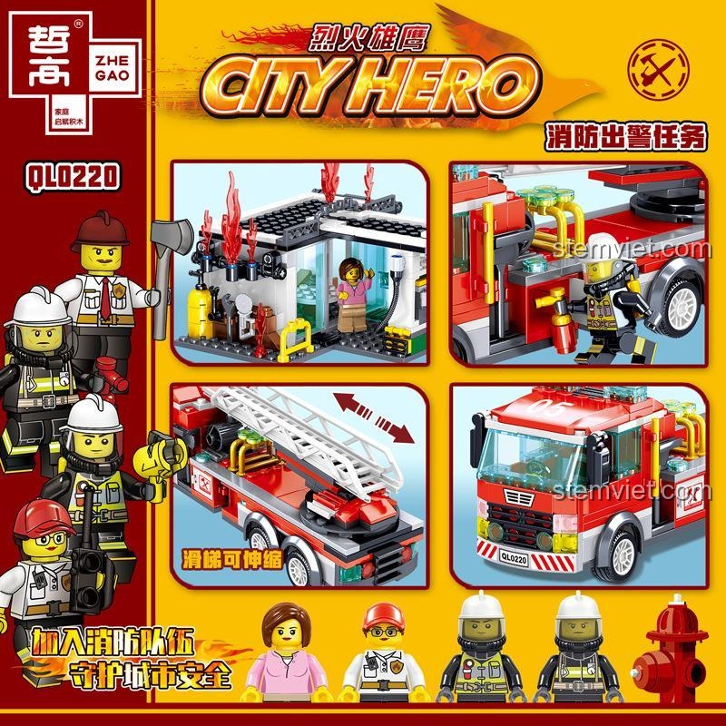 Con Trai 6+ Tuổi Sẽ Thích Mê: ZHEGAO QL0220 Đội Anh Hùng Cứu Hỏa Thành Phố (Gồm Xe Cứu Hỏa và Trạm Xăng)