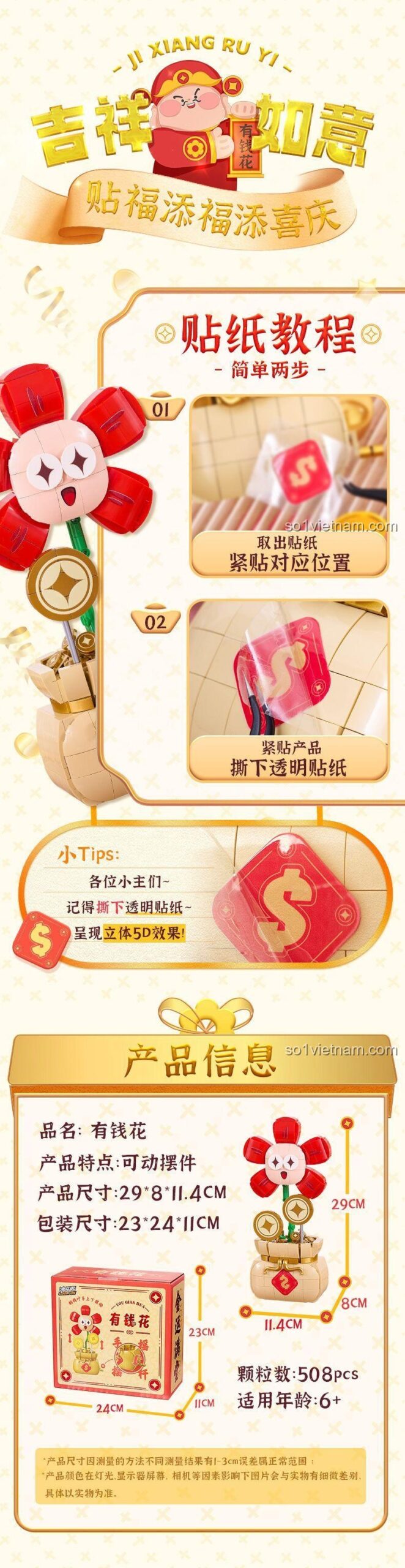 Hãy tưởng tượng bé yêu của bạn, sau những giờ học tập, có thể tự mình lắp ráp nên một chậu hoa rực rỡ, tự tay làm cho những đồng tiền vàng ‘nhảy múa’. Đó không chỉ là niềm vui của sự hoàn thành, mà còn là cách để bé hiểu hơn về giá trị của lao động và những lời chúc tốt đẹp trong cuộc sống. Món đồ chơi này sẽ là một điểm nhấn đầy màu sắc và ý nghĩa, khơi gợi những câu chuyện thú vị và mang lại năng lượng tích cực mỗi ngày.