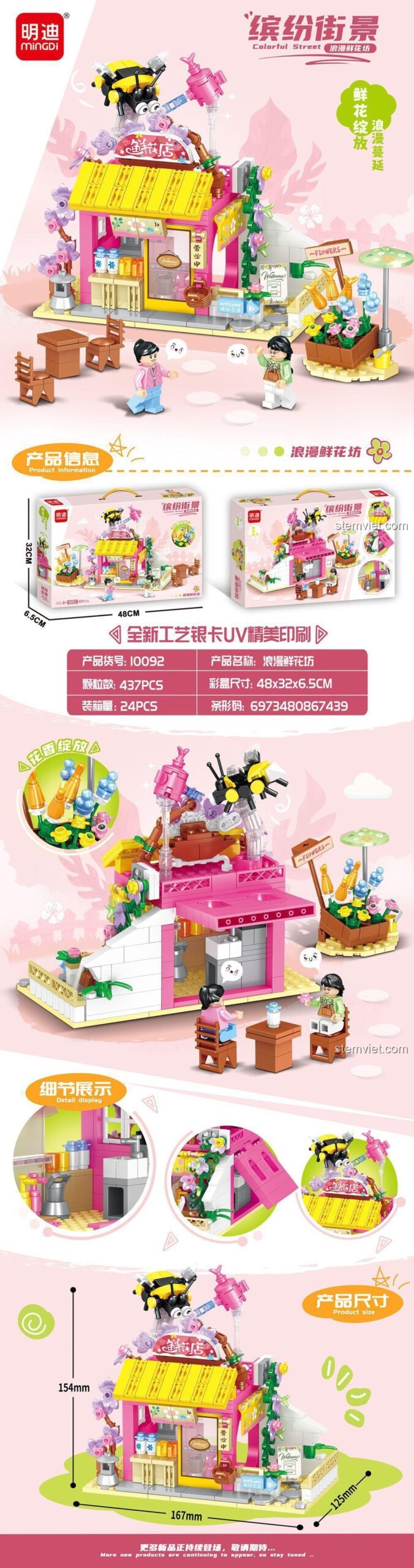 Đừng chần chừ nữa! Hãy mang về cho bé yêu của bạn bộ đồ chơi lắp ráp Cửa Hàng Hoa Lãng Mạn Phố Sắc Màu Mingdi Leibao 10092 ngay hôm nay để bé thỏa sức sáng tạo và phát triển toàn diện!