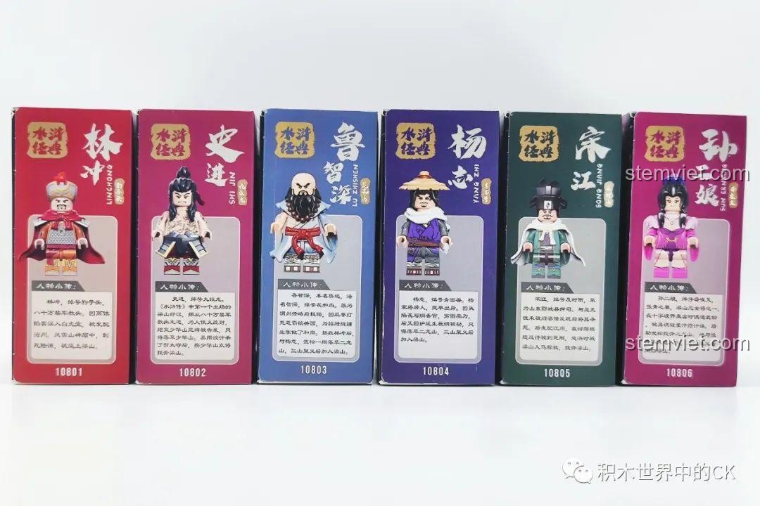 Ngoài Lâm Xung, series bộ đồ chơi Thủy Hử Tiểu Hiệp của Decool còn có nhiều nhân vật nổi tiếng khác như Sử Tiến, Lỗ Trí Thâm, Dương Chí, Tống Giang và Tôn Nhị Nương. Mỗi nhân vật đều có thiết kế độc đáo và đế trưng bày riêng, tạo thành một bộ sưu tập hoàn chỉnh và hấp dẫn. Bạn có thể sưu tầm trọn bộ để tái hiện lại toàn bộ câu chuyện Thủy Hử một cách sống động nhất với các khối lắp ghép Lâm Xung Báo Tử Đầu và những người bạn của mình.