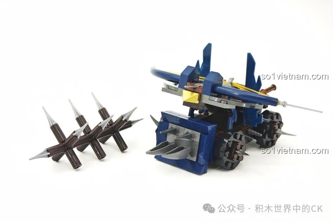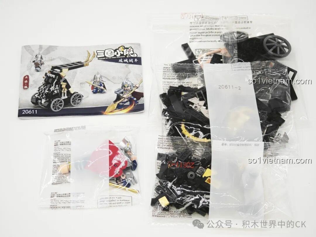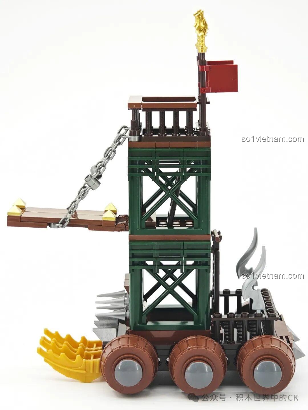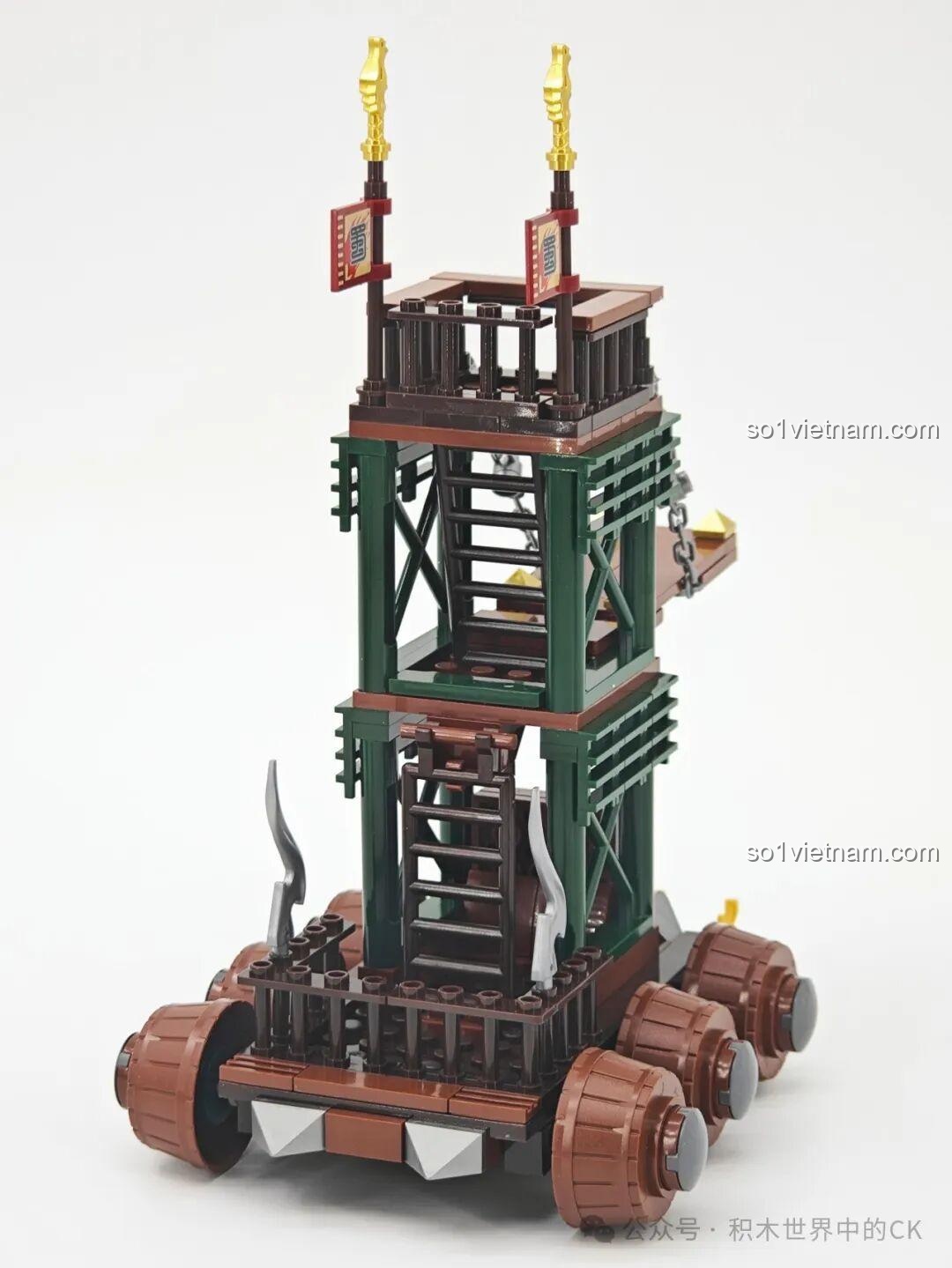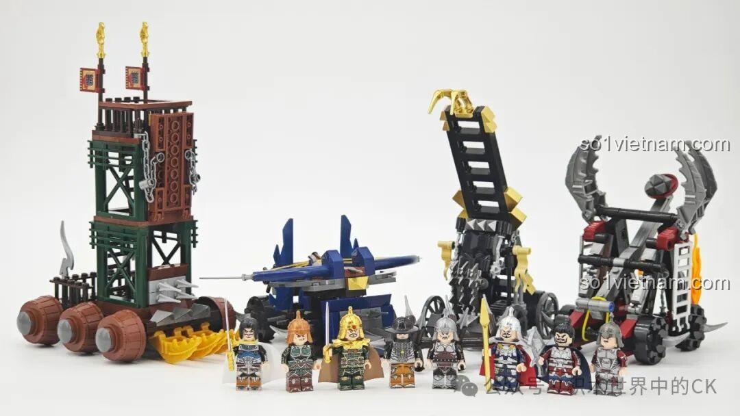 Bộ lắp ghép Decool 20610 nổi bật với thiết kế mô phỏng chân thực Xe Bánh Xích Công Thành, một vũ khí lợi hại trong các cuộc vây hãm thời Tam Quốc. Từng chi tiết nhỏ như bánh xe, tháp pháo, thang leo, cờ hiệu đều được tái hiện tỉ mỉ, mang đến một mô hình sống động và đầy ấn tượng.
