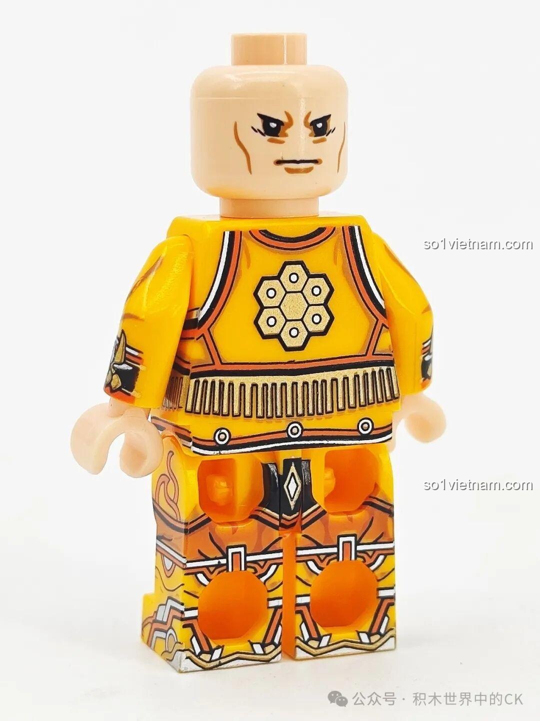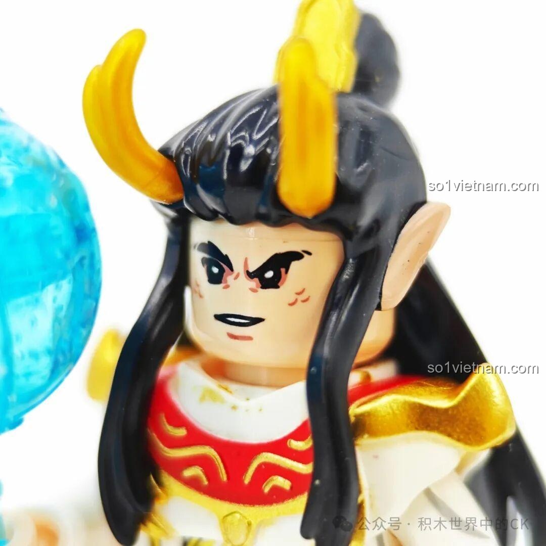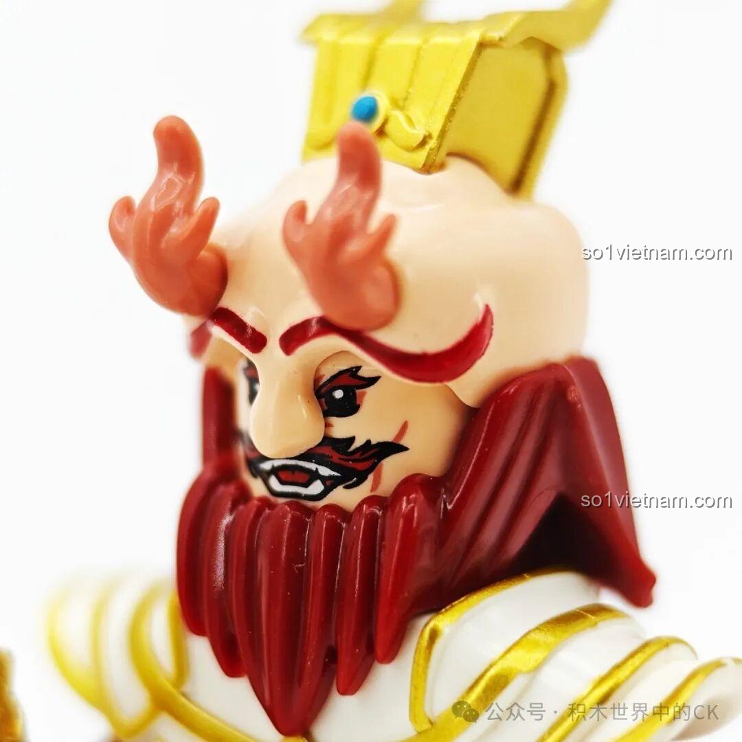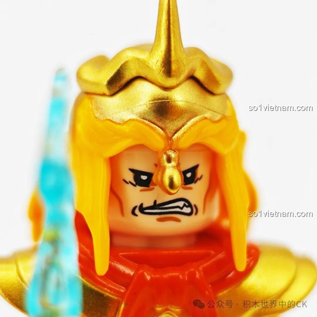 Bộ lắp ráp Decool 30313 Kim Giác Đại Vương gây ấn tượng mạnh mẽ với thiết kế tỉ mỉ, tái hiện sinh động hình ảnh nhân vật. Áo giáp vàng rực rỡ, mũ trụ uy nghiêm, choàng đỏ thẫm cùng với phụ kiện là bình ngọc và ngọn lửa xanh huyền bí, tất cả đều được chăm chút đến từng chi tiết nhỏ nhất. Màu sắc chủ đạo Vàng, Cam, Đỏ, Trắng kết hợp hài hòa, tạo nên một diện mạo oai phong, lẫm liệt, đúng như hình tượng Kim Giác Đại Vương trong truyện.