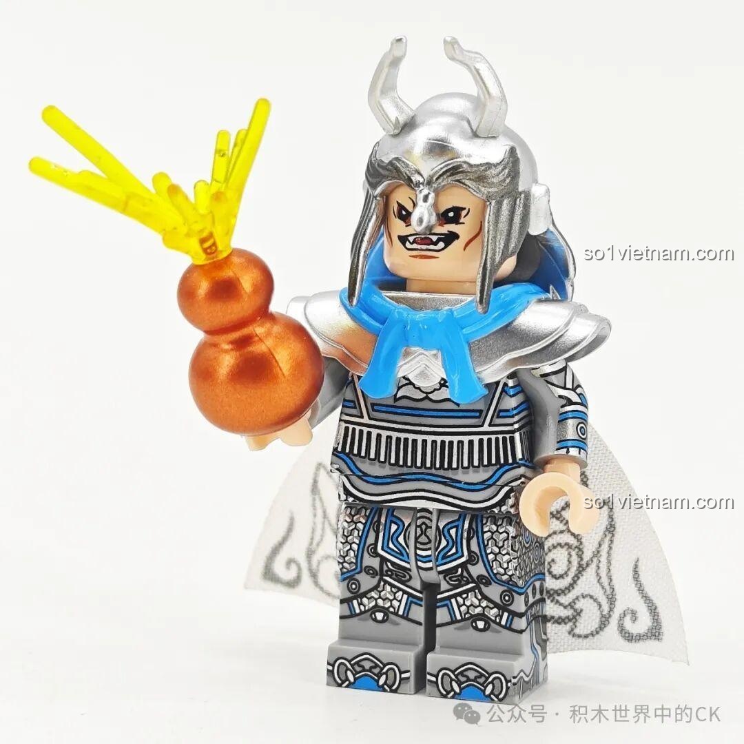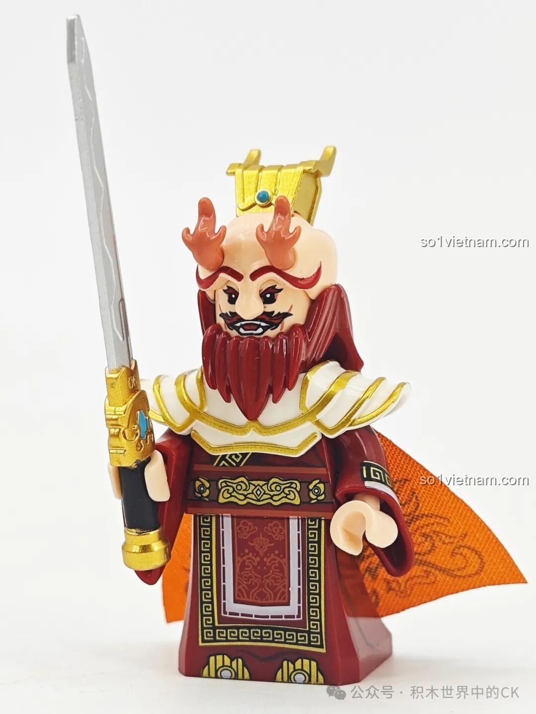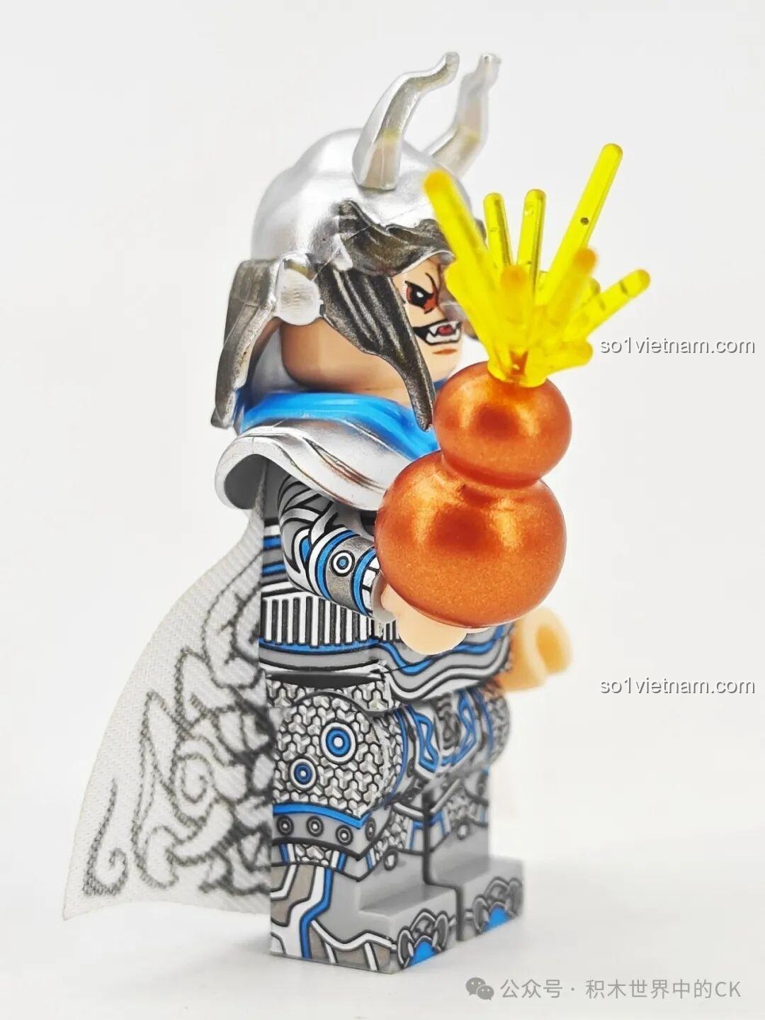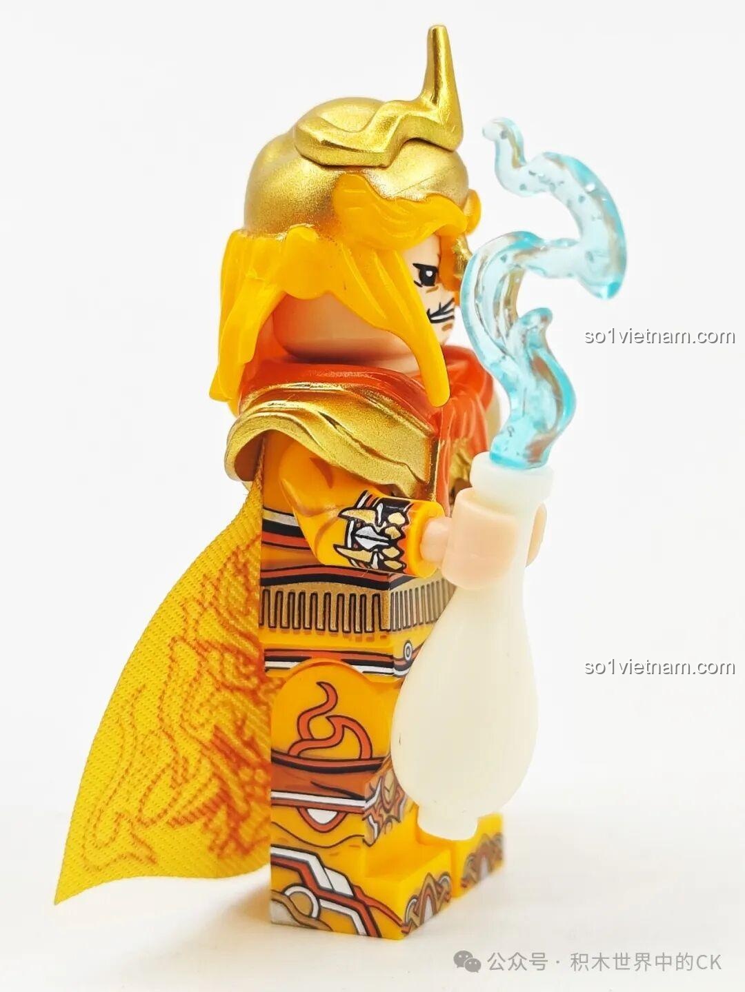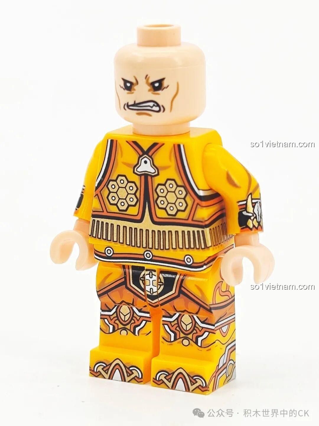 Bộ lắp ráp Decool 30313 Kim Giác Đại Vương gây ấn tượng mạnh mẽ với thiết kế tỉ mỉ, tái hiện sinh động hình ảnh nhân vật. Áo giáp vàng rực rỡ, mũ trụ uy nghiêm, choàng đỏ thẫm cùng với phụ kiện là bình ngọc và ngọn lửa xanh huyền bí, tất cả đều được chăm chút đến từng chi tiết nhỏ nhất. Màu sắc chủ đạo Vàng, Cam, Đỏ, Trắng kết hợp hài hòa, tạo nên một diện mạo oai phong, lẫm liệt, đúng như hình tượng Kim Giác Đại Vương trong truyện.