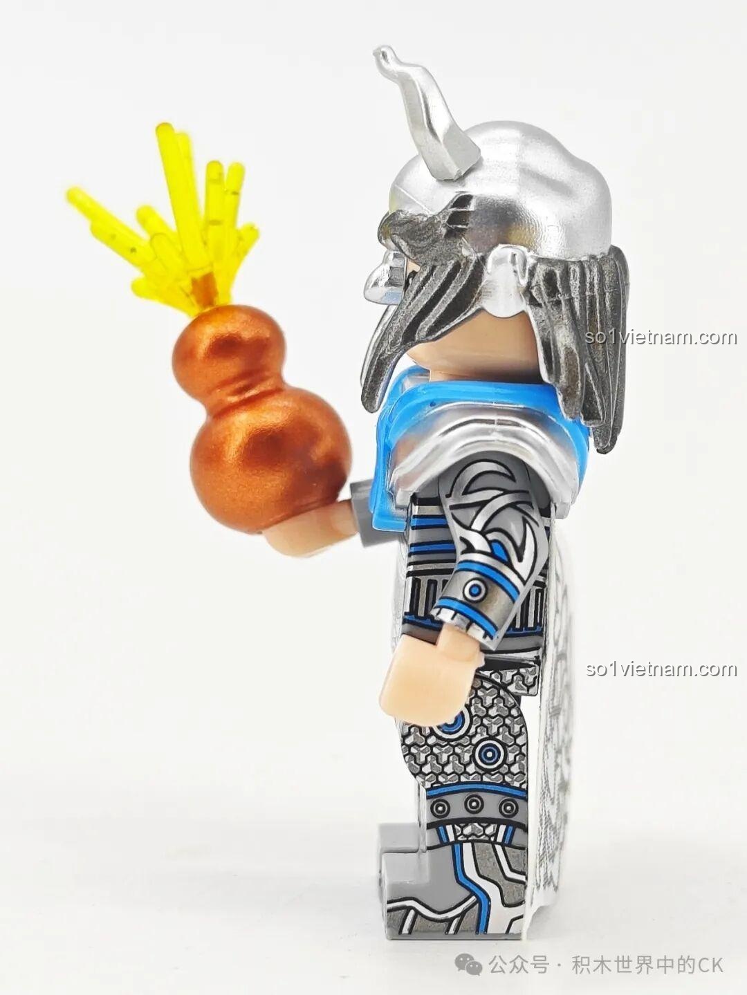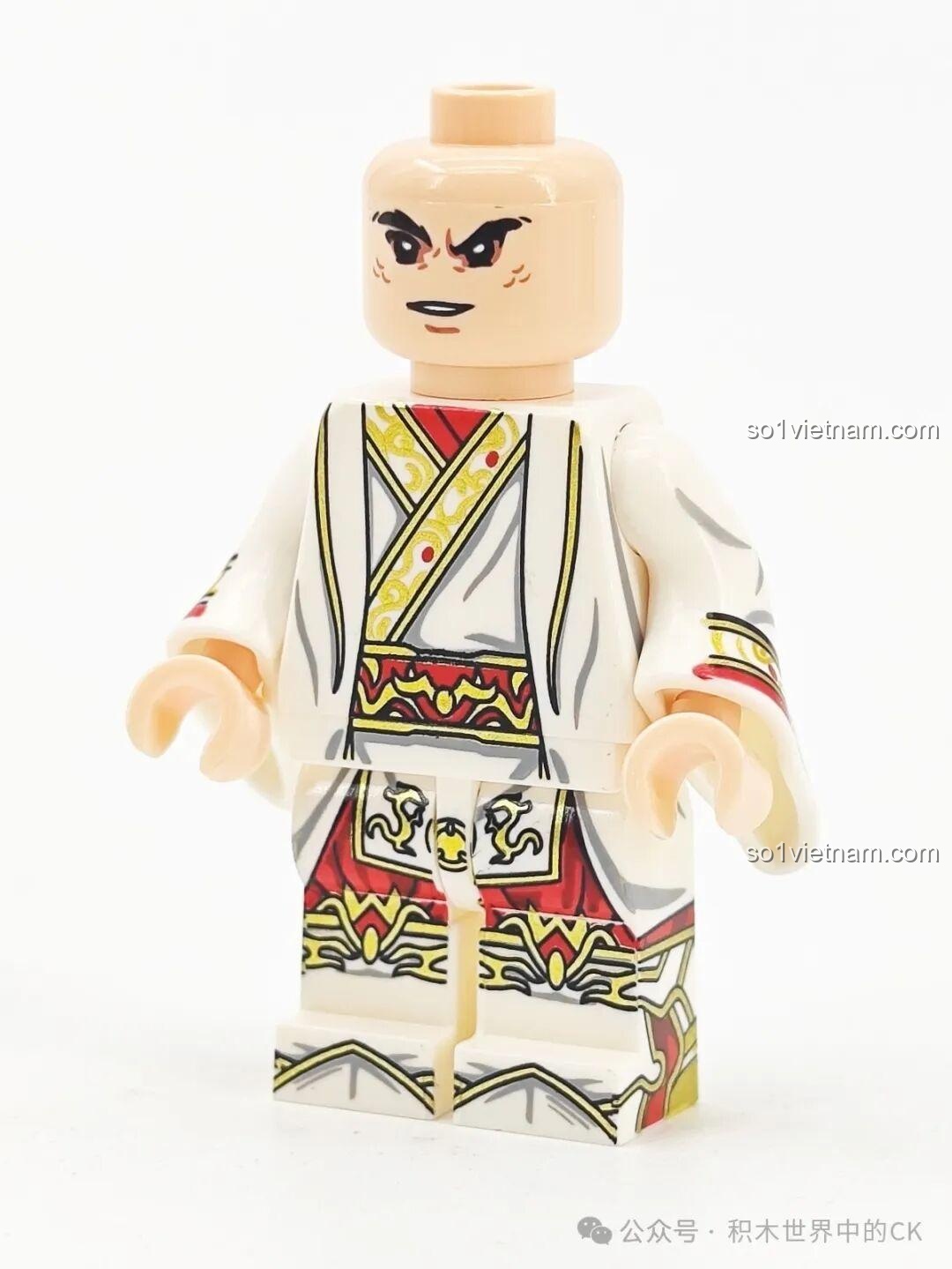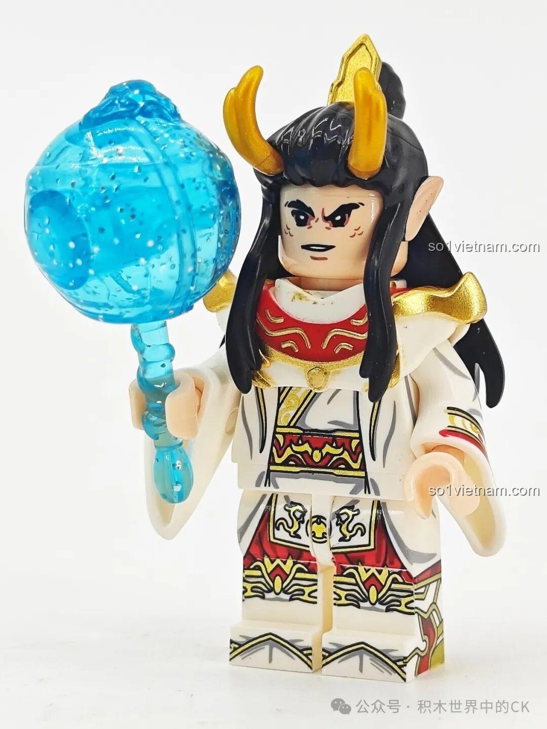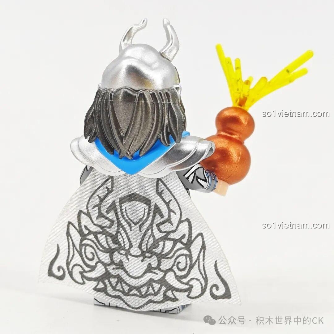Bộ lắp ráp Decool 30313 Kim Giác Đại Vương gây ấn tượng mạnh mẽ với thiết kế tỉ mỉ, tái hiện sinh động hình ảnh nhân vật. Áo giáp vàng rực rỡ, mũ trụ uy nghiêm, choàng đỏ thẫm cùng với phụ kiện là bình ngọc và ngọn lửa xanh huyền bí, tất cả đều được chăm chút đến từng chi tiết nhỏ nhất. Màu sắc chủ đạo Vàng, Cam, Đỏ, Trắng kết hợp hài hòa, tạo nên một diện mạo oai phong, lẫm liệt, đúng như hình tượng Kim Giác Đại Vương trong truyện.