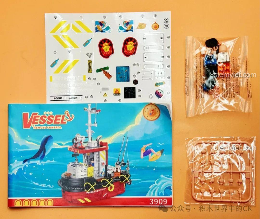 Điểm nhấn đắt giá nhất của Decool 3909 chính là bộ động cơ và tính năng điều khiển từ xa (RC) hiện đại. Không còn là mô hình tĩnh nhàm chán, chiếc thuyền câu cá này có thể thực sự ‘sống’ và di chuyển. Bộ sản phẩm đi kèm một tay cầm điều khiển nhỏ gọn, dễ sử dụng và một mô-đun động lực tích hợp pin sạc (sạc tiện lợi qua cổng USB). Bé có thể dễ dàng điều khiển con tàu của mình tiến, lùi, rẽ trái, rẽ phải một cách linh hoạt. Đặc biệt, với thiết kế thân tàu kín và khả năng chống nước, chiếc thuyền này hoàn toàn có thể nổi và di chuyển trên mặt nước như một con tàu thật! Hãy tưởng tượng niềm vui và sự phấn khích của bé khi được điều khiển con tàu của chính mình lướt đi trong bồn tắm, bể bơi hay hồ nước nhỏ. Đây là một trải nghiệm tương tác tuyệt vời, giúp bé hiểu thêm về các nguyên lý vật lý cơ bản một cách trực quan và sinh động.