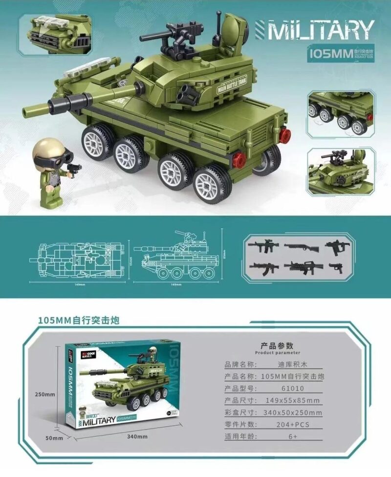 Bộ lắp ghép Decool 61010 Xe Pháo Tự Hành 105MM (204 mảnh) – Sức Mạnh Pháo Binh và Mô Hình Quân Sự Chân Thực