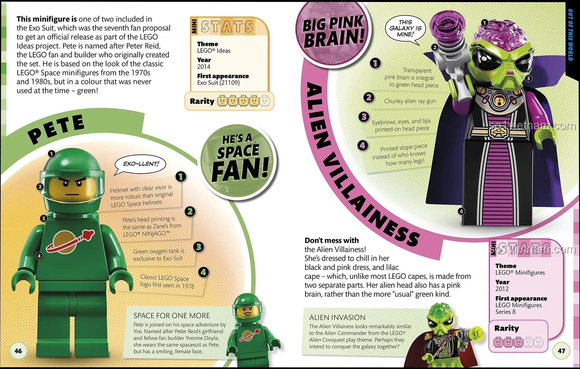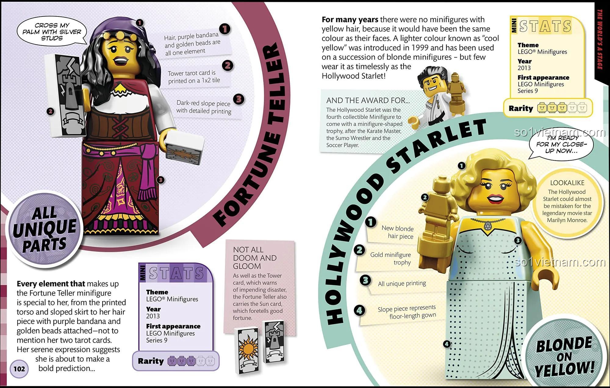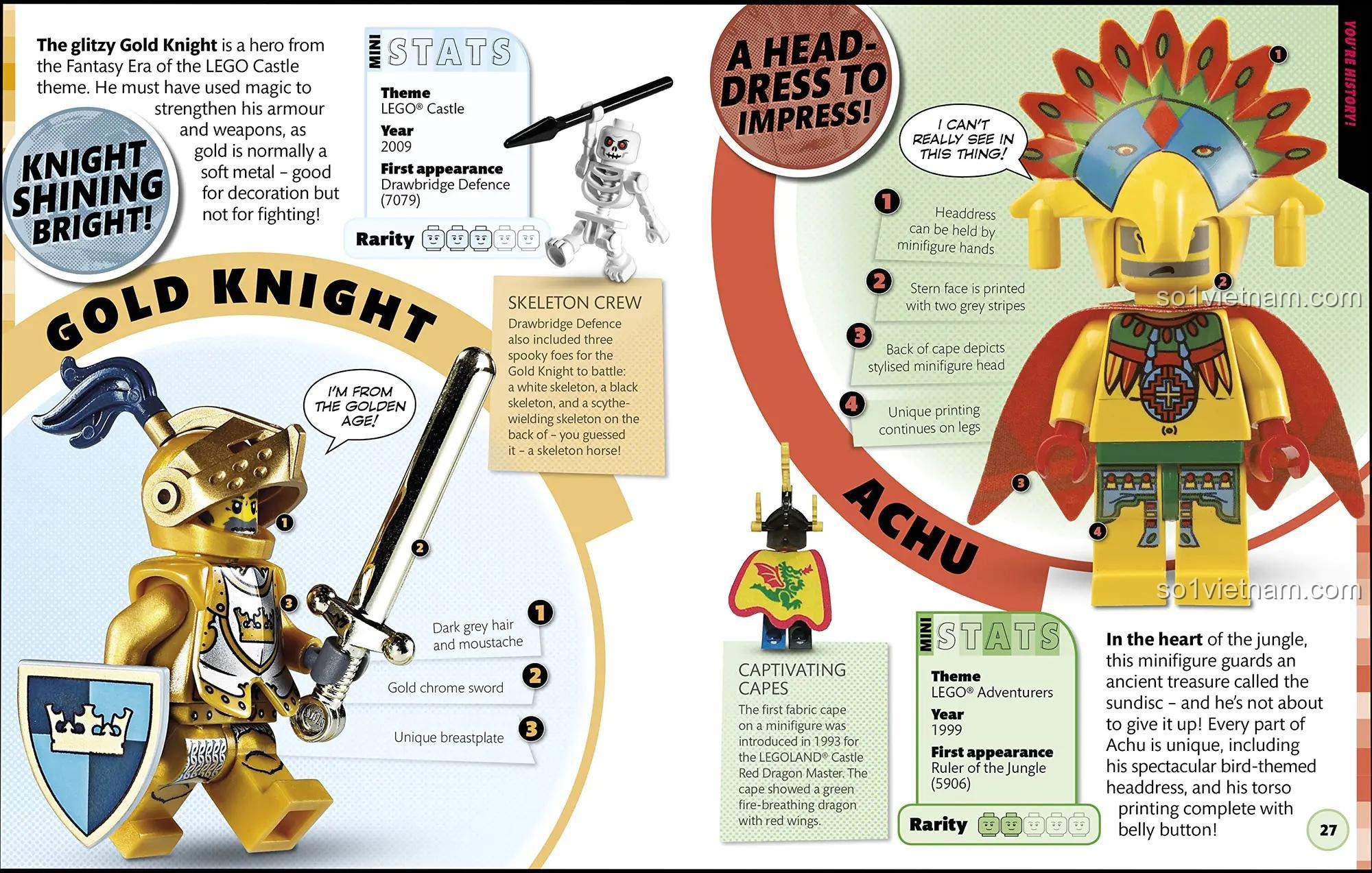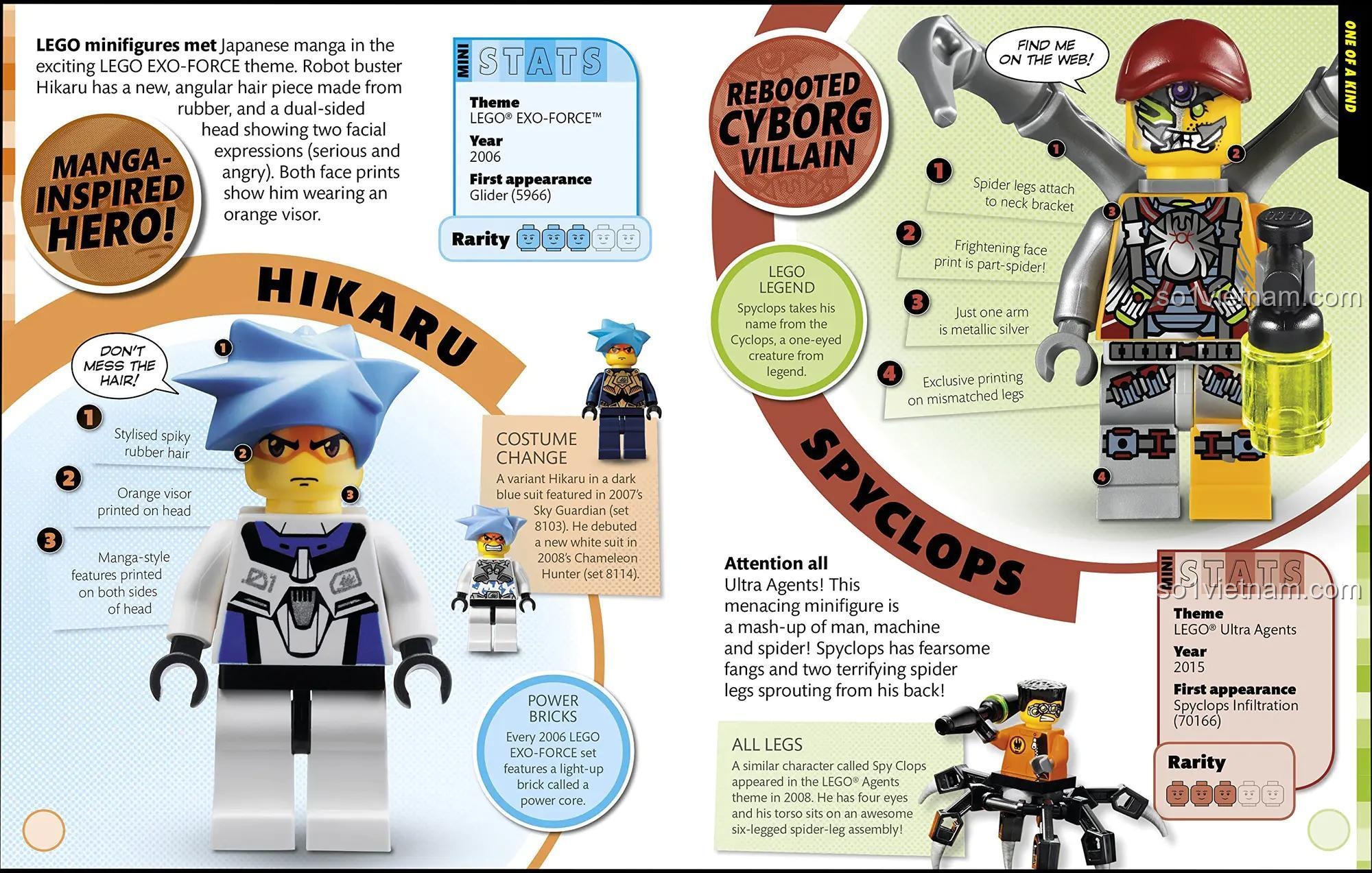 Bên cạnh đó, cuốn DK Sách LEGO Minifigure này còn có tính năng như một cuốn cẩm nang sưu tầm toàn diện. Nó cung cấp thông tin chi tiết về hơn 200 minifigure, bao gồm cả những nhân vật kinh điển và những phiên bản hiếm. Bé có thể dễ dàng tra cứu thông tin về nhân vật yêu thích, tìm hiểu về lịch sử, thiết kế, và độ hiếm của từng minifigure. Điều này không chỉ giúp bé mở rộng kiến thức về vũ trụ LEGO® mà còn khuyến khích niềm đam mê sưu tầm, tạo ra một hoạt động giải trí bổ ích và mang tính giáo dục cao.