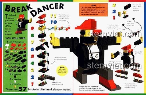 Điểm đặc biệt nhất của cuốn sách này là nó không đi kèm bất kỳ viên gạch nào! Nghe có vẻ lạ, nhưng đó chính là tính năng tuyệt vời nhất. Nó khuyến khích trẻ em nhìn lại những gì mình đang có và suy nghĩ: ‘Mình có thể làm gì với chúng?’. Cuốn sách cung cấp hơn 10 ý tưởng và hướng dẫn chi tiết để lắp ráp các nhân vật khác nhau, từ vận động viên, nhạc công đến vũ công. Mỗi mô hình là một thử thách nhỏ, một bài học về kết cấu và sự cân bằng. Các hướng dẫn được thiết kế theo kiểu ‘Tương thích LEGO®’, nghĩa là bé có thể sử dụng bất kỳ viên gạch tiêu chuẩn nào mình có. Tính năng này không chỉ dạy bé cách làm theo chỉ dẫn mà còn khuyến khích bé biến tấu, thay đổi màu sắc, thêm thắt chi tiết để tạo ra nhân vật của riêng mình. Cuốn sách trở thành một người thầy thầm lặng, hướng dẫn bé các kỹ thuật xây dựng nền tảng, từ đó bé có thể tự mình sáng tạo ra vô số mô hình khác trong tương lai.