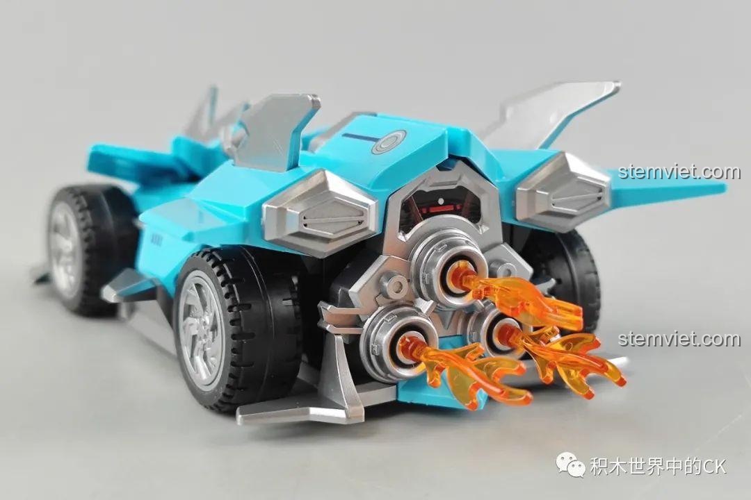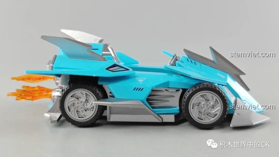 Với kích thước mô hình dài 14.7 cm, rộng 8.8 cm và cao 5 cm, chiếc xe có tỉ lệ hoàn hảo để bé dễ dàng cầm nắm và điều khiển. Đặc biệt, điểm nhấn của Enlighten 74014 chính là các chi tiết mô hình hóa cao cấp, không chỉ là những mảnh ghép thông thường mà còn là những bộ phận được đúc sẵn với độ chính xác cao, mang lại vẻ ngoài tinh xảo và chân thực như một mô hình tĩnh chuyên nghiệp. Hiệu ứng phun lửa màu cam rực rỡ ở phía sau xe càng làm tăng thêm vẻ “ngầu” và tốc độ, khiến bé trai 8 tuổi nào cũng phải trầm trồ.
