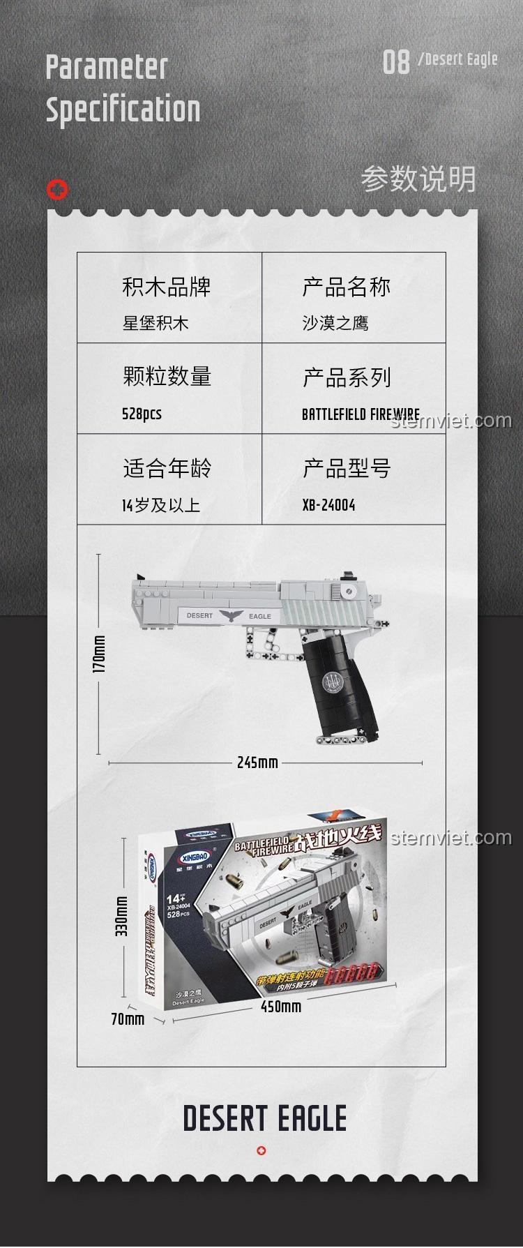 Đồ chơi mô hình XINGBAO XB-24004 Súng Lục Desert Eagle (528 mảnh) – Sức Mạnh Quân Sự và Bắn Đạn Nhựa