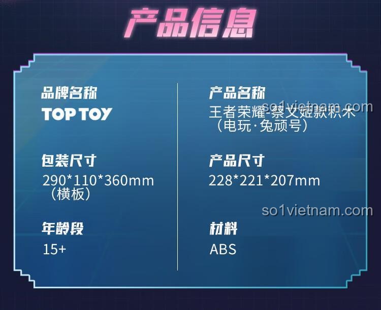 Đối với những game thủ 15 tuổi, đặc biệt là các bạn nữ yêu thích tựa game MOBA đình đám Vương Giả Vinh Diệu (Honor of Kings), cái tên Thái Văn Cơ đã trở nên quá đỗi quen thuộc. Cô nàng Hỗ Trợ đáng yêu với khả năng hồi máu và khống chế khó chịu luôn là một lựa chọn được tin dùng. Giờ đây, TOP TOY đã biến nhân vật ảo được yêu mến ấy thành một tác phẩm nghệ thuật lắp ráp ngoài đời thực với bộ sản phẩm TC1811: Thái Văn Cơ – Thỏ Siêu Quậy Điện Tử. Đây không chỉ là một món đồ chơi, mà là cả một tấm vé đưa bạn trở lại những trận combat nảy lửa, những pha phối hợp ăn ý cùng đồng đội. Sản phẩm này tái hiện hoàn hảo skin ‘Arcade Rabbit’ – một trong những trang phục được yêu thích nhất của Thái Văn Cơ, mang phong cách game thùng cổ điển đầy màu sắc và hoài niệm. Việc sở hữu và tự tay lắp ráp mô hình này giống như việc bạn đang triệu hồi vị tướng tủ của mình ra thế giới thực, một cảm giác mà bất kỳ fan chân chính nào cũng ao ước được trải nghiệm.