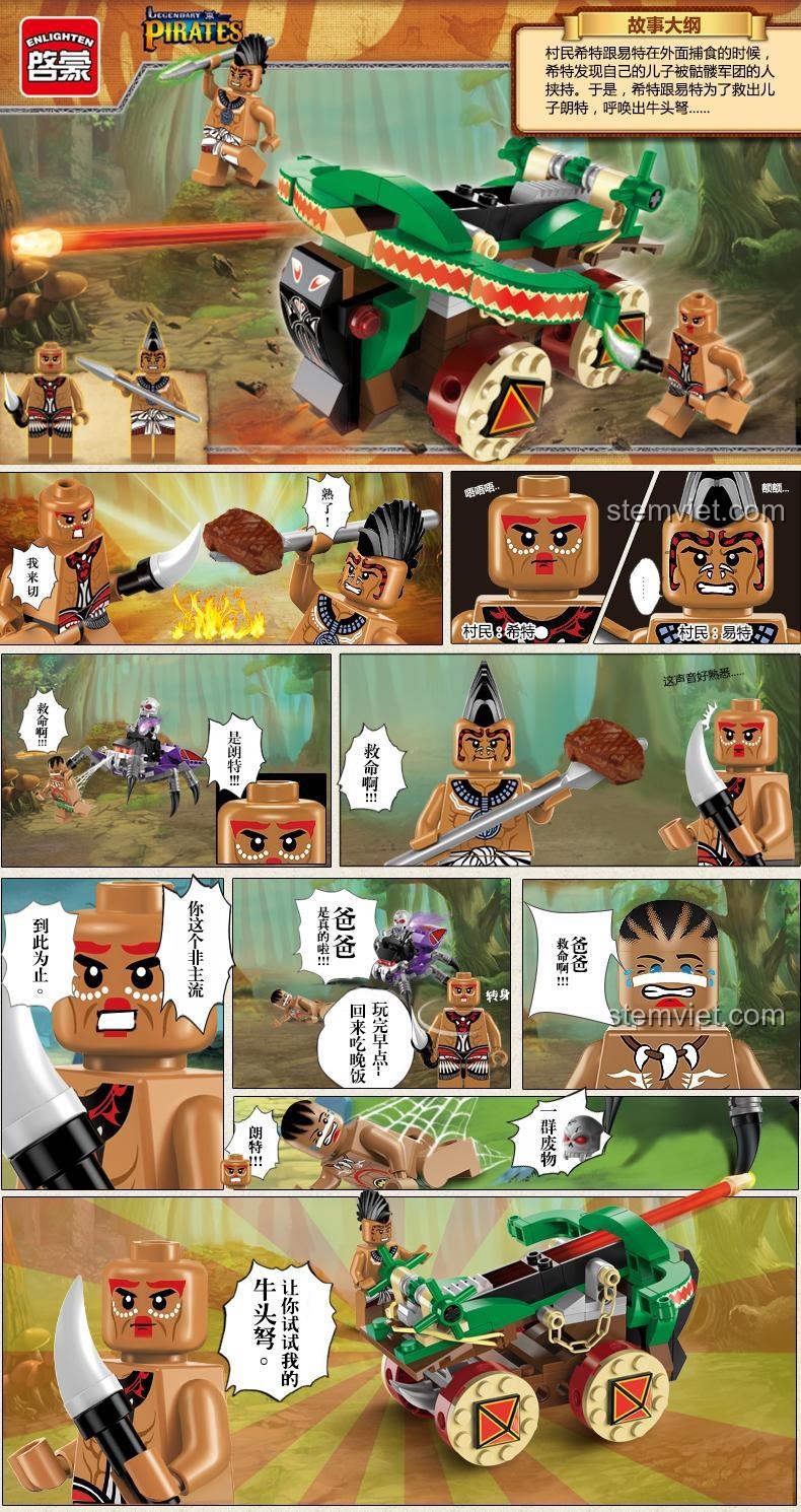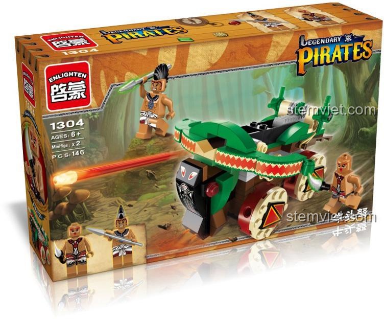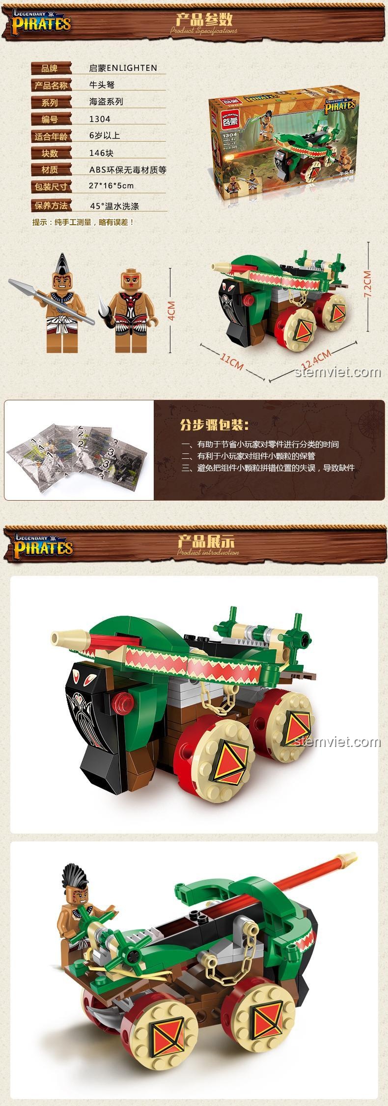 Bộ đồ chơi lắp ráp Enlighten 1304 Nỏ Bắn Hình Đầu Trâu Của Hải Tặc Huyền Thoại đi kèm 2 minifigure chiến binh hải tặc, mỗi nhân vật đều được thiết kế chi tiết với trang bị riêng, sẵn sàng cho những cuộc phiêu lưu đầy kịch tính.