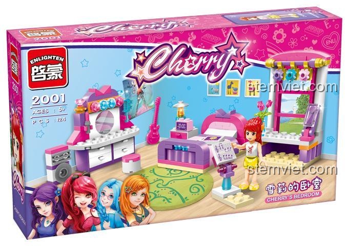 Bộ set đồ chơi Enlighten 2001 này nổi bật với sự kết hợp hài hòa của các màu sắc chủ đạo như hồng, tím, trắng và xanh lá, tạo nên một không gian phòng ngủ vừa ngọt ngào, vừa tươi mới. Từng mảnh ghép được chế tác tinh xảo, đảm bảo độ chính xác cao khi lắp ráp, mang đến một mô hình hoàn thiện đẹp mắt và sống động. Bé sẽ được chiêm ngưỡng chiếc giường êm ái với ga trải giường màu tím mộng mơ, bàn trang điểm lấp lánh với gương soi và các ngăn kéo tiện lợi, cùng với cây đàn guitar hồng xinh xắn và giá nhạc với những bản nhạc yêu thích của Cherry.
