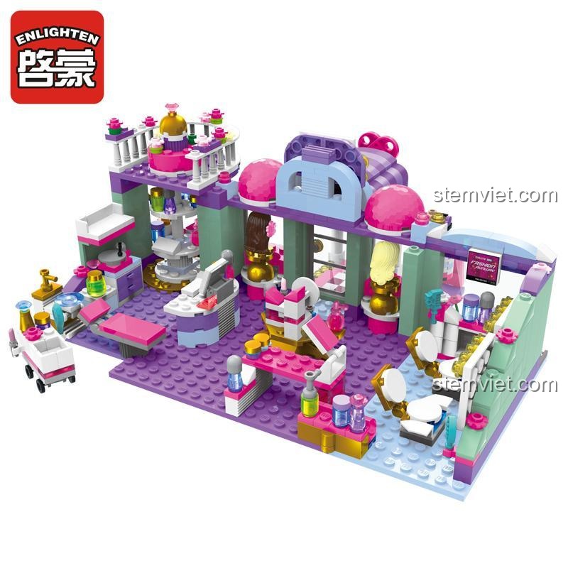 Bộ lắp ghép Cửa hàng làm đẹp Enlighten 2006 là một minh chứng cho sự tinh xảo trong thiết kế và độ chi tiết cao. Với tông màu chủ đạo là hồng, tím, xanh dương và trắng, mô hình cửa hàng làm đẹp này toát lên vẻ đẹp ngọt ngào, nữ tính, thu hút mọi ánh nhìn của bé gái 6 tuổi. Từng mảnh ghép được gia công tỉ mỉ, tạo nên một tổng thể hài hòa và sống động.