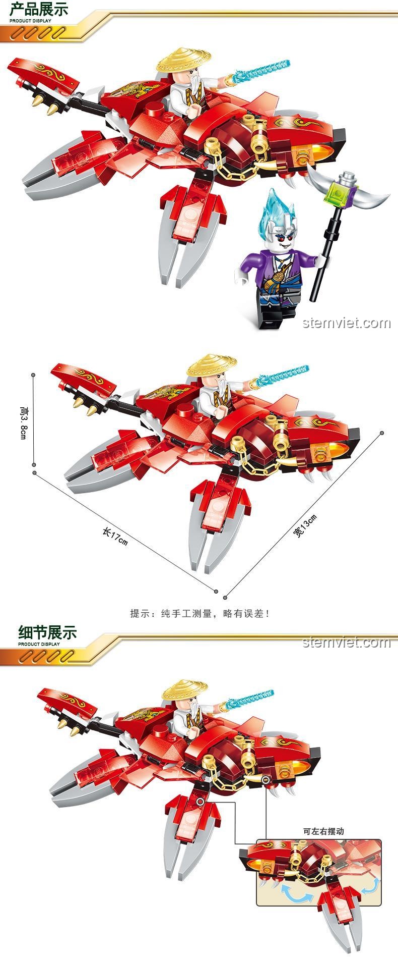 Bộ đồ chơi mô hình Tàu Chiến Huyền Vũ Enlighten 2201 sẽ khiến bé và cả bạn phải trầm trồ với thiết kế vô cùng ấn tượng. Lấy cảm hứng từ linh vật Huyền Vũ, chiếc phi thuyền này sở hữu màu sắc chủ đạo là Đỏ mạnh mẽ, kết hợp hài hòa với Xám, Đen và Vàng, tạo nên một tổng thể vừa uy nghi vừa bắt mắt. Với chiều dài mô hình 17cm, chiều rộng 13cm và chiều cao 8cm, đây là một mô hình vừa vặn để bé dễ dàng cầm nắm và chơi đùa. Từng mảnh ghép được gia công tỉ mỉ, tái hiện chân thực hình dáng của một chiến thuyền rùa thần thoại, với các chi tiết như mai rùa, chân và đầu rồng. Đặc biệt, bộ đồ chơi xây dựng 2201 này còn đi kèm 2 minifigure Khương Tử Nha và Thân Công Báo, những nhân vật quen thuộc từ Phong Thần Diễn Nghĩa, giúp bé nhập vai và sáng tạo câu chuyện dễ dàng hơn. Đây chắc chắn là một bộ xếp hình Mô Hình Huyền Vũ không thể thiếu trong bộ sưu tập của bất kỳ bé trai nào yêu thích thần thoại và phiêu lưu.