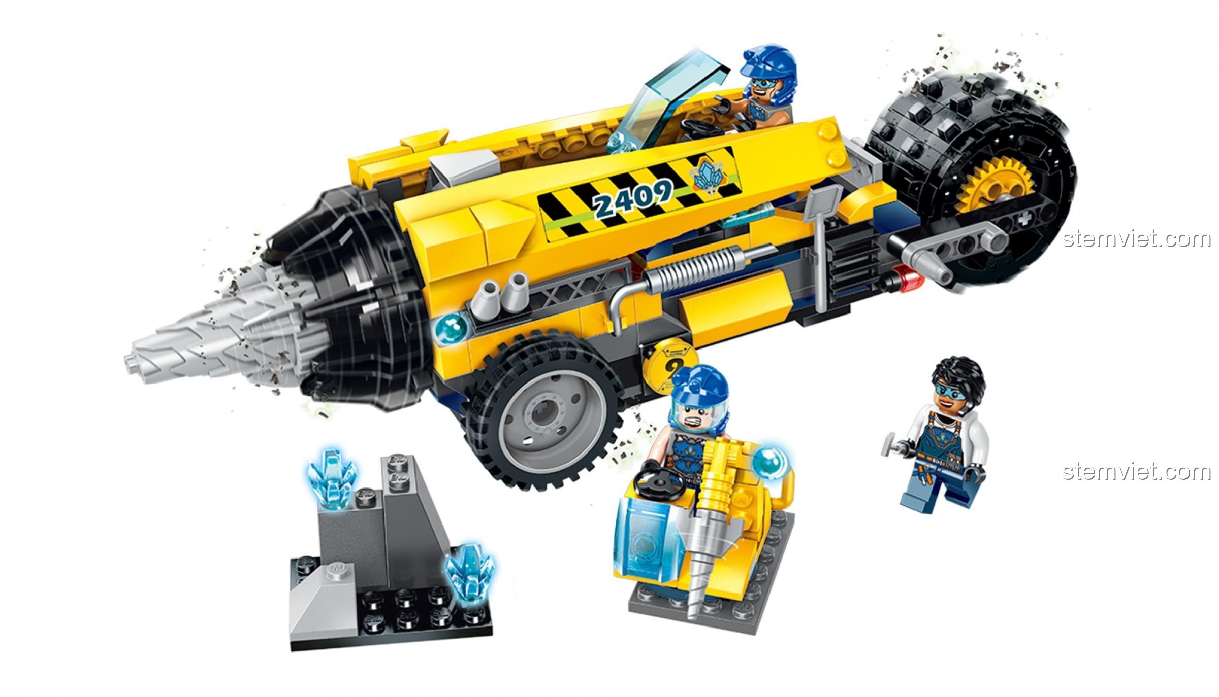 Đặc biệt, với chủ đề khai thác khoáng sản và các tinh thể năng lượng, bộ đồ chơi này còn kích thích trí tưởng tượng và khả năng sáng tạo của bé. Bé có thể tự mình xây dựng các kịch bản phiêu lưu, hóa thân thành những nhà thám hiểm dũng cảm, tìm kiếm kho báu và vượt qua thử thách. Đây là một món đồ chơi giáo dục theo phương pháp STEM (Khoa học, Công nghệ, Kỹ thuật và Toán học) hiệu quả, giúp bé tiếp cận các khái niệm cơ bản về cơ khí, cấu trúc và vật lý một cách trực quan và thú vị. Bộ lắp ghép 2409 Xe Khoan Rồng Đất sẽ là công cụ tuyệt vời để bé phát triển tư duy hệ thống và khả năng tự học hỏi.