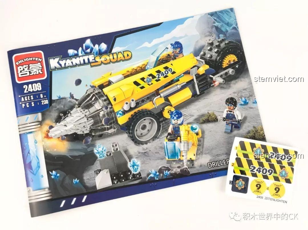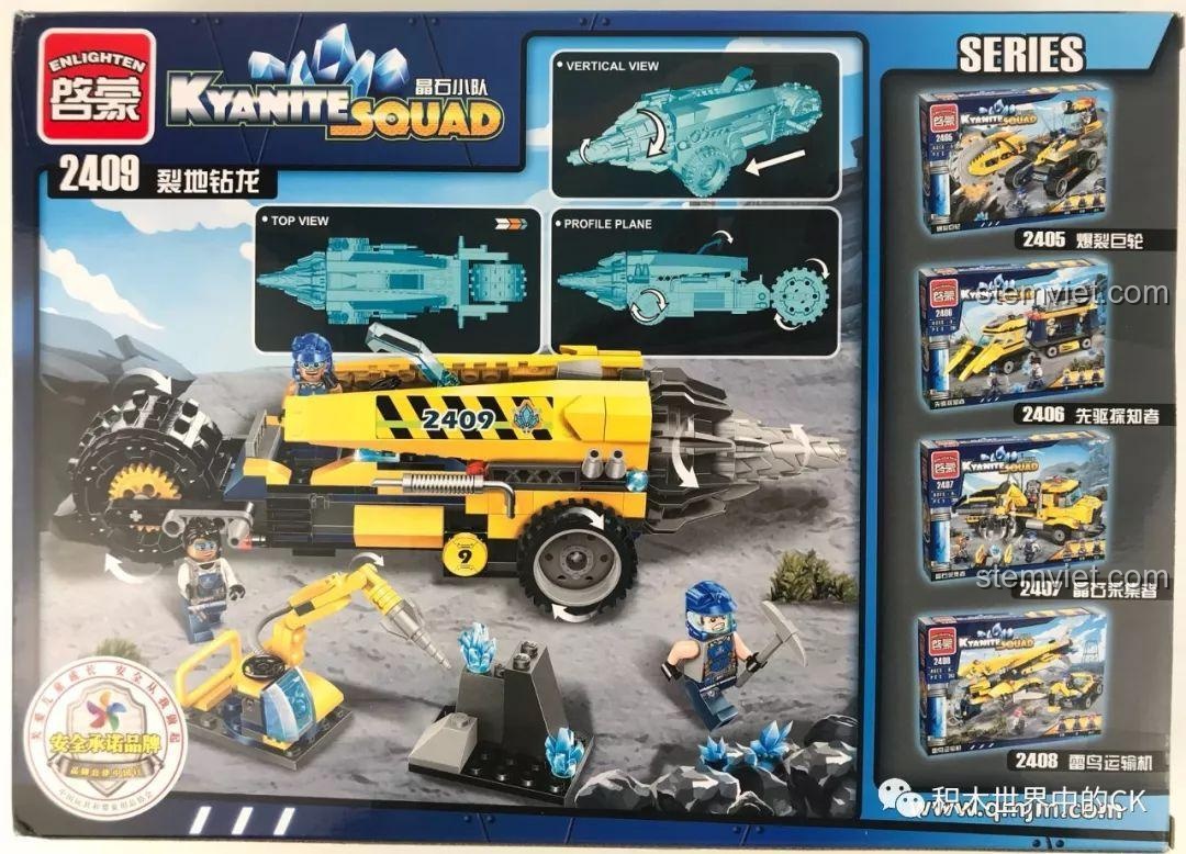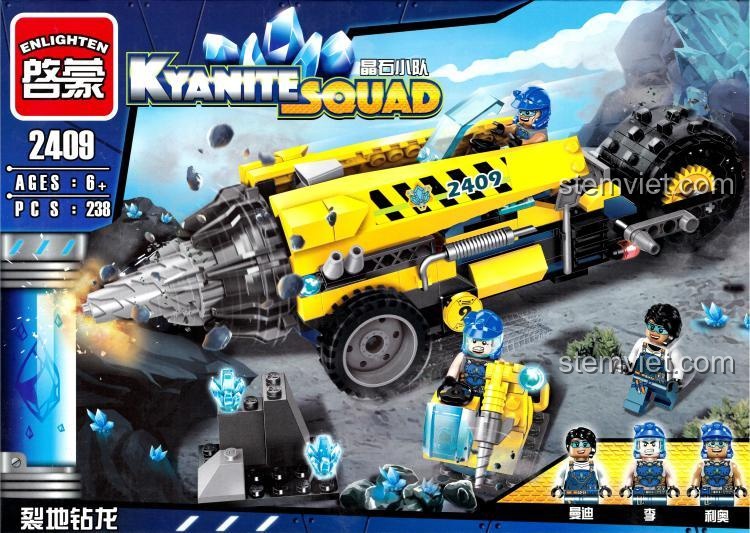Chào mừng các bậc phụ huynh và các bé trai đam mê khám phá! Hôm nay, chúng ta sẽ cùng nhau tìm hiểu về một bộ đồ chơi lắp ráp vô cùng đặc biệt: Xe Khoan Rồng Đất Đội Kyanite với mã số 2409 từ hãng Enlighten. Bộ đồ chơi này thuộc series “Kyanite Squad” (Đội Tinh Thể Kyanite), một thế giới giả tưởng nơi những nhà thám hiểm dũng cảm sử dụng các cỗ máy hiện đại để khai phá những tinh thể năng lượng quý hiếm ẩn sâu trong lòng đất. Câu chuyện bắt đầu khi một đội khảo sát phát hiện ra một mỏ tinh thể Kyanite khổng lồ trên đỉnh núi. Để tiếp cận nguồn năng lượng vô tận này, họ đã điều động những cỗ máy khoan tối tân nhất, trong đó có chiếc Xe Khoan Rồng Đất Enlighten 2409 mạnh mẽ này.