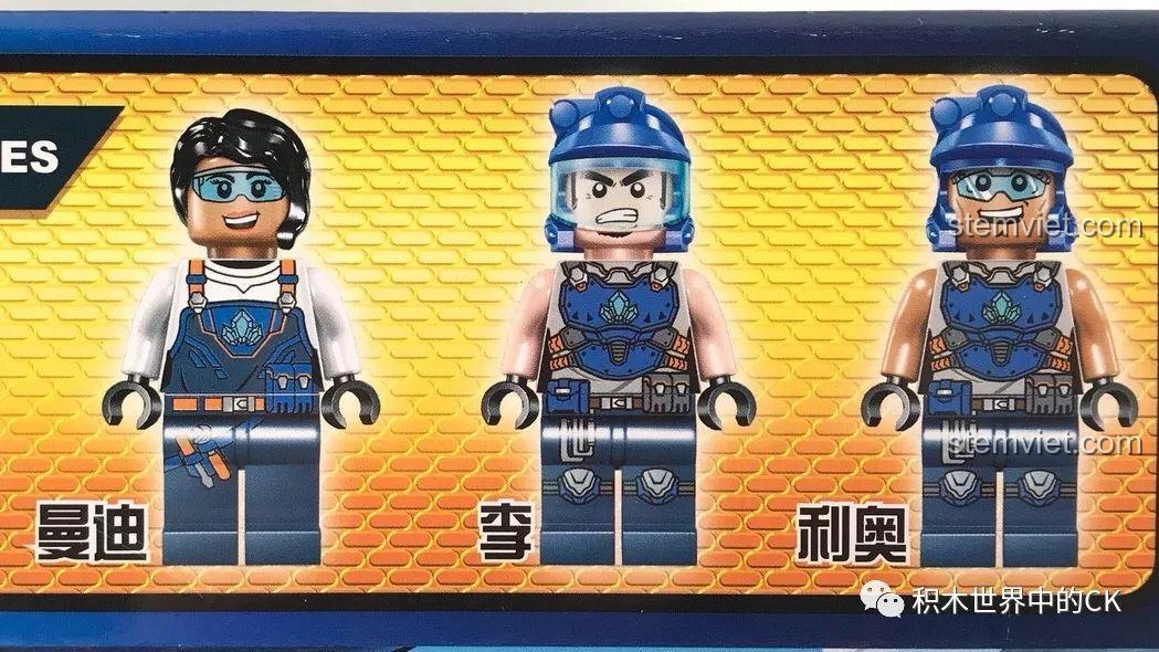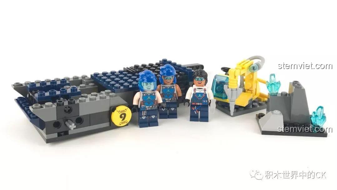 Bộ đồ chơi lắp ráp 9 này đi kèm với 3 minifigure độc đáo: Lý, Leo và Mandy. Mỗi nhân vật đều có trang phục và phụ kiện riêng, giúp bé dễ dàng nhập vai và tạo ra những câu chuyện phiêu lưu khai thác khoáng sản đầy kịch tính.