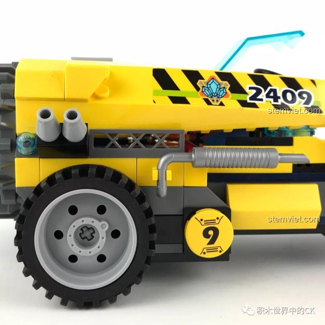 Bên cạnh đó, chiếc xe còn có bánh xe sau được thiết kế đặc biệt, có khả năng thích nghi với nhiều loại địa hình khác nhau, giúp xe di chuyển mượt mà ngay cả trên những bề mặt không bằng phẳng. Buồng lái ẩn có thể mở ra để đặt một trong ba minifigures vào vị trí điều khiển, tạo cảm giác như bé đang thực sự lái chiếc xe khoan này. Bộ sản phẩm còn đi kèm một máy khoan phụ nhỏ và các tinh thể năng lượng, cho phép bé tạo ra những kịch bản khai thác khoáng sản đa dạng và phong phú. Với 238 mảnh ghép tương thích LEGO®, bộ xếp hình Xe Công Trình Khoan này chắc chắn sẽ mang đến những giờ phút vui chơi đầy sáng tạo và hứng khởi cho bé trai.