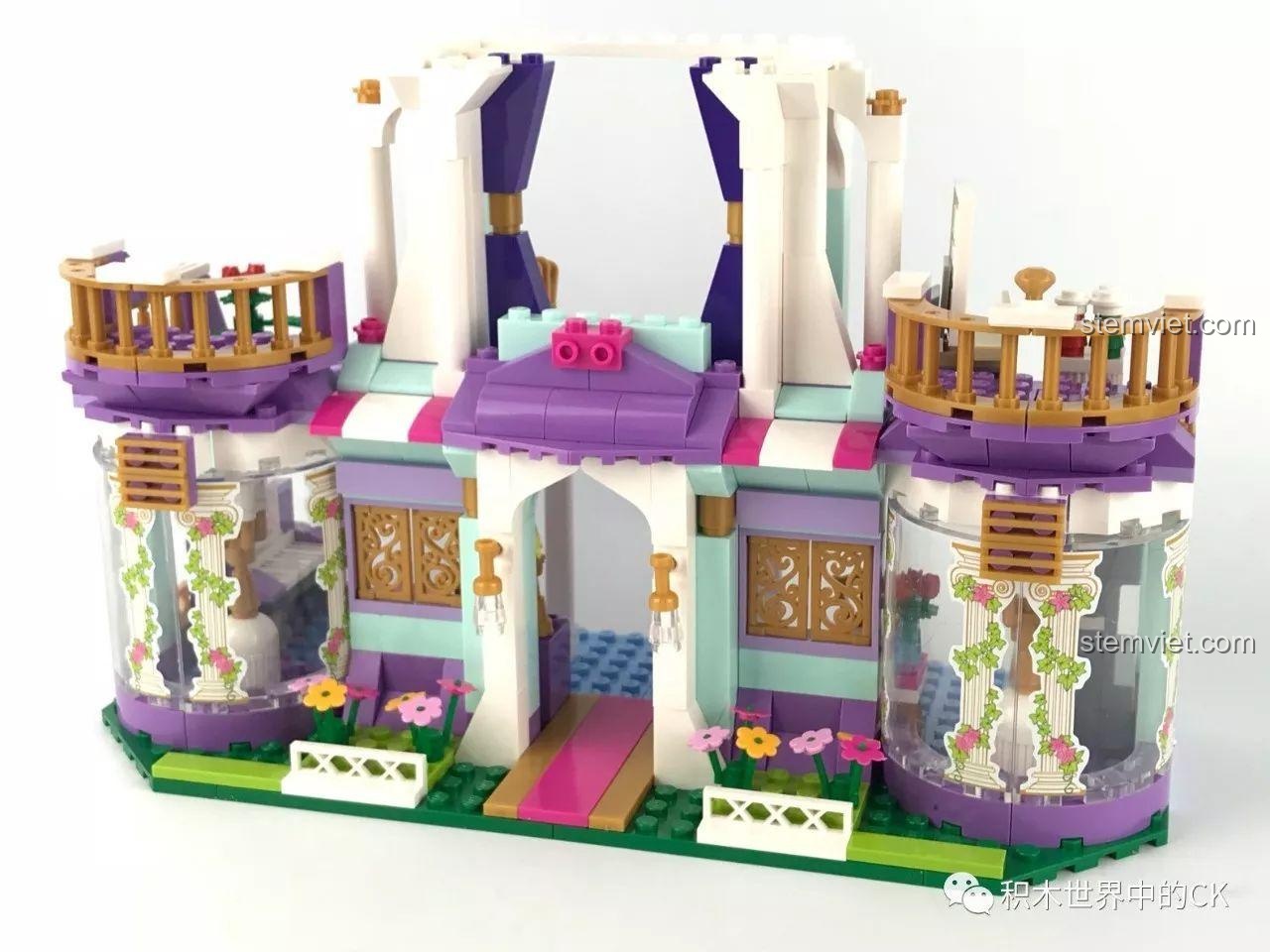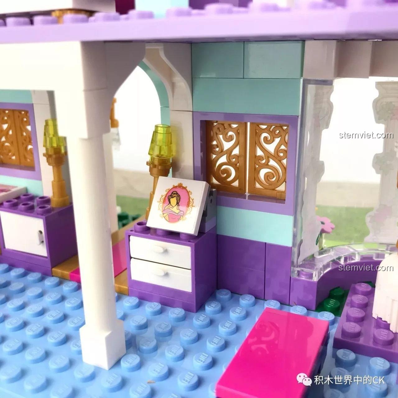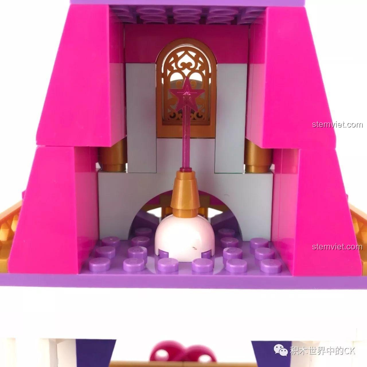 Bộ lắp ghép Học viện Hoàng gia Winston Enlighten 2611 nổi bật với thiết kế lâu đài công chúa lộng lẫy, sử dụng các màu sắc chủ đạo như hồng, tím, xanh lơ, trắng và vàng, tạo nên một tổng thể hài hòa và bắt mắt. Từng chi tiết của bộ đồ chơi lắp ghép Lâu đài công chúa Qman 2611 đều được mô phỏng chân thực, từ những cột trụ trang trí hoa văn leo tường cho đến những ban công nhỏ xinh xắn. Mô hình này không chỉ là một công trình kiến trúc đẹp mắt mà còn là một không gian chơi đầy đủ tiện nghi, khuyến khích bé gái 6 tuổi thỏa sức tưởng tượng và nhập vai.