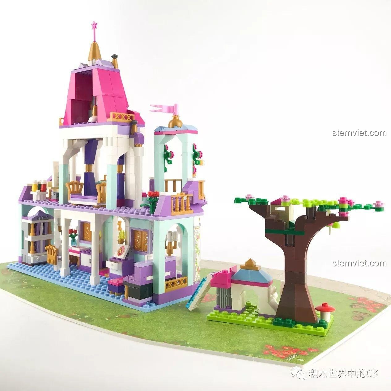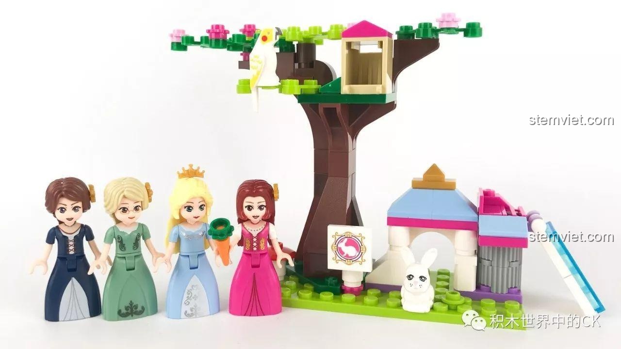 Điểm nhấn nổi bật của bộ lắp ghép Lâu đài công chúa Qman 2611 là 4 minifigures công chúa xinh đẹp, mỗi nàng công chúa đều có trang phục và phụ kiện riêng, sẵn sàng cùng bé khám phá mọi ngóc ngách của học viện. Ngoài ra, bộ đồ chơi còn đi kèm với các phụ kiện đáng yêu như cây cối, nhà thỏ và nhà vẹt, tạo nên một khu vườn sinh động, nơi các nàng công chúa có thể chăm sóc thú cưng và tận hưởng không gian xanh mát. Bộ đồ chơi xếp hình Trường học công chúa Keeppley 2611 này không chỉ giúp bé rèn luyện kỹ năng lắp ráp mà còn khuyến khích bé phát triển khả năng kể chuyện và tương tác xã hội.