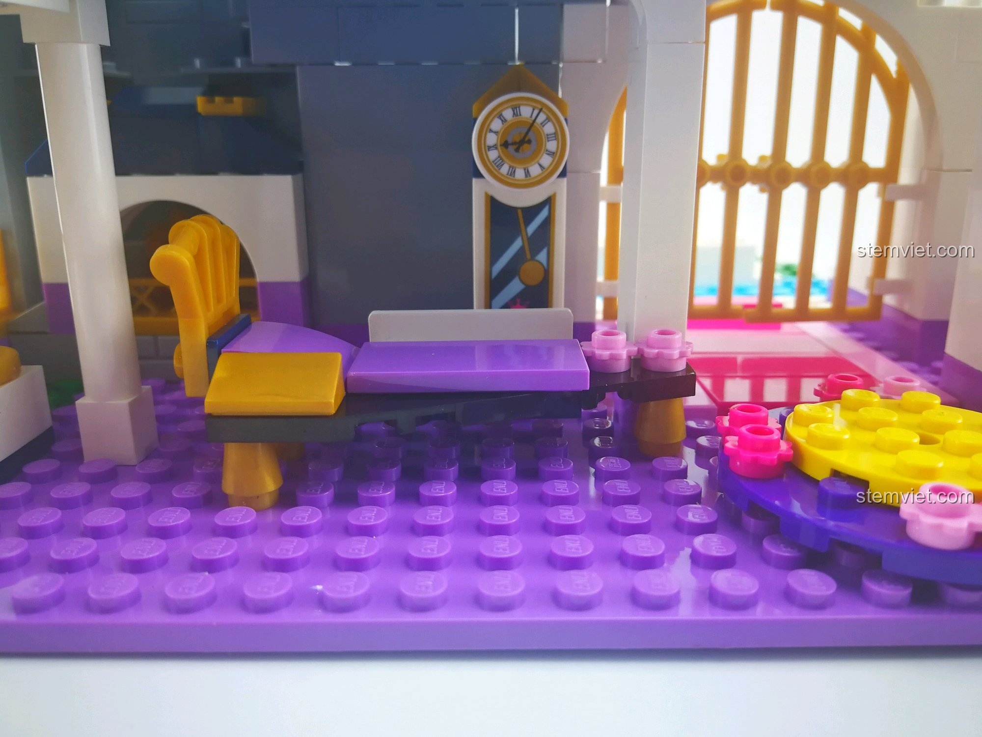 Từng mảnh ghép của đồ chơi lắp ghép Lâu đài cổ tích này được thiết kế tỉ mỉ, tái hiện chân thực các chi tiết kiến trúc như cửa sổ hoa văn, ban công, và cầu thang xoắn ốc dẫn lên các tầng tháp. Bên trong, bộ xếp hình Cung điện công chúa này còn có nội thất phong phú với bàn tiệc hai tầng đầy ắp bánh kẹo, một sàn nhảy xoay độc đáo và những vật dụng trang trí tinh tế. Kích thước mô hình sau khi hoàn thành là Dài 40cm x Rộng 25cm x Cao 45cm, đủ lớn để bé thỏa sức sáng tạo và nhập vai, đồng thời cũng là một vật trang trí đẹp mắt cho căn phòng của bé. Đồ chơi mô hình Lâu đài của Công chúa Leah này chắc chắn sẽ làm bé mê mẩn ngay từ cái nhìn đầu tiên.