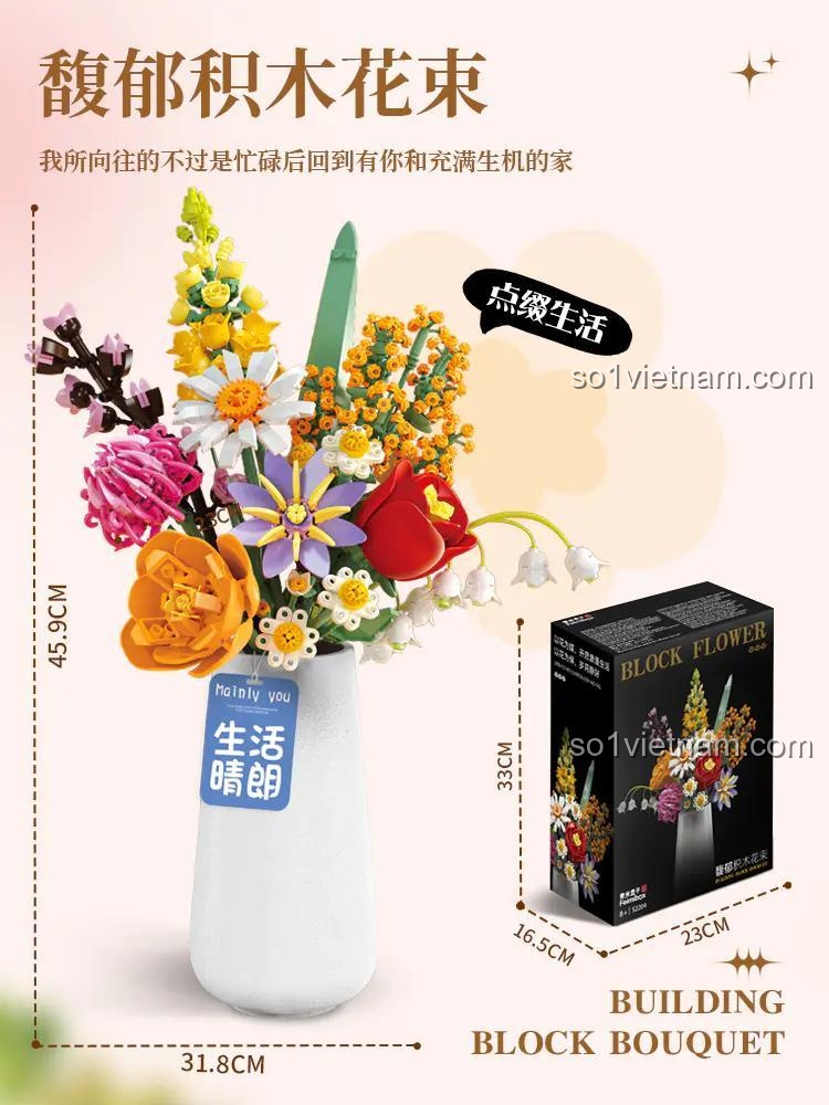 Chào mừng bạn đến với thế giới của những đóa hoa không bao giờ tàn! Bộ lắp ghép Bó Hoa Gạch Xếp Hình Femibox S2261 là một tuyệt tác nghệ thuật, mang đến cho bạn cơ hội tự tay kiến tạo một bó hoa rực rỡ, sống động với 1070 chi tiết tinh xảo. Đây không chỉ là một món đồ chơi, mà còn là một tác phẩm trang trí độc đáo, tô điểm cho không gian sống của bạn thêm phần tươi mới và tràn đầy sức sống.