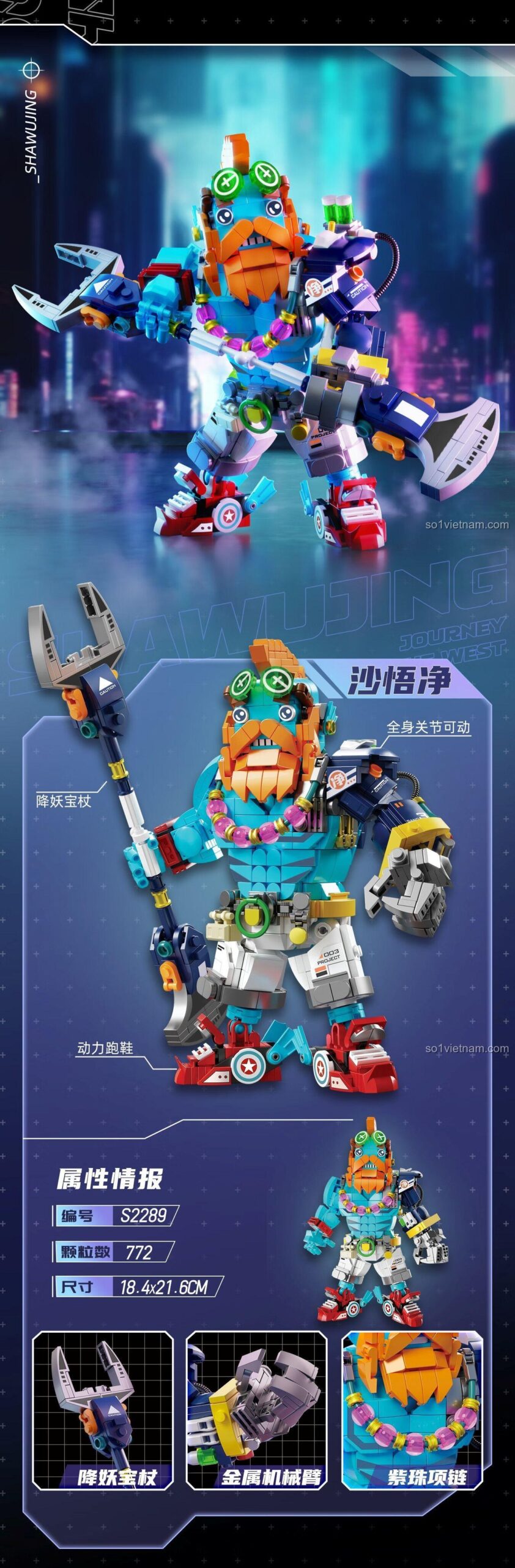 Điểm nhấn của Robot Sa Ngộ Tĩnh S2289 chính là các khớp nối linh hoạt, cho phép bé tạo ra vô số tư thế chiến đấu hoặc trưng bày độc đáo. Từ đôi giày động lực cho đến các chi tiết cơ khí trên giáp, mọi thứ đều được chăm chút để mang lại trải nghiệm lắp ráp và chơi chân thực nhất. Mô hình Sa Ngộ Tĩnh này không chỉ là một đồ chơi mô hình Sa Tăng mà còn là một tác phẩm nghệ thuật thu nhỏ, thể hiện sự kết hợp hài hòa giữa truyền thống và tương lai.