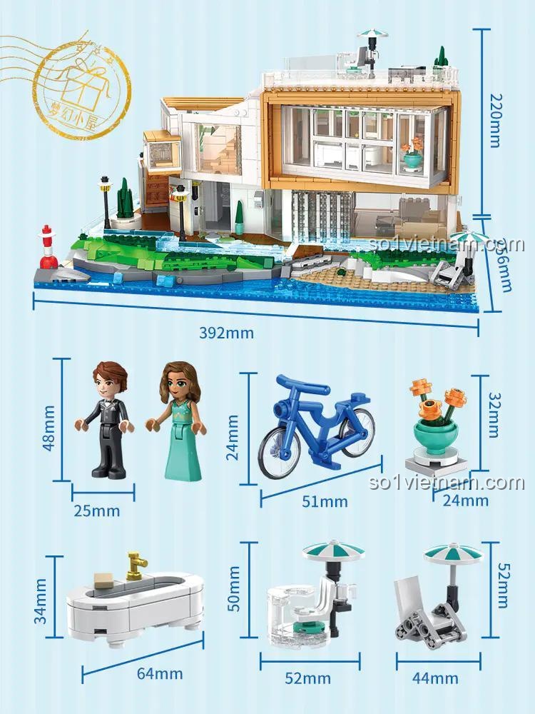 Ngôi nhà mơ ước: Biệt thự ven biển FC8531 là minh chứng cho sự sáng tạo không giới hạn trong thiết kế kiến trúc. Bộ lắp ghép này tái hiện một cách chân thực và sống động hình ảnh một biệt thự hiện đại, sang trọng, tọa lạc ngay bên bờ biển xanh mát. Với kích thước ấn tượng sau khi hoàn thành (39.2 x 25.6 x 22 cm), mô hình này sẽ trở thành điểm nhấn nổi bật trong không gian phòng của bé hoặc là một vật phẩm trang trí đầy nghệ thuật.
