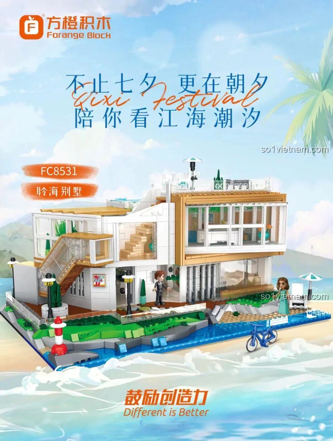 Chào mừng quý khách đến với thế giới kỳ diệu của Forange Block, nơi những ý tưởng sáng tạo không ngừng được thổi hồn vào từng bộ lắp ghép. Hôm nay, chúng tôi tự hào giới thiệu đến bạn sản phẩm tâm điểm: Ngôi nhà mơ ước: Biệt thự ven biển FC8531. Đây không chỉ là một bộ đồ chơi lắp ráp, mà còn là một hành trình khám phá, một tác phẩm nghệ thuật thu nhỏ, được thiết kế đặc biệt dành cho những tâm hồn mơ mộng, yêu thích cái đẹp và sự tinh tế. Với 2228 mảnh ghép chi tiết, bộ sản phẩm này hứa hẹn mang đến những giờ phút giải trí đỉnh cao, đồng thời nuôi dưỡng những kỹ năng quan trọng cho sự phát triển của trẻ. Hãy cùng chúng tôi bước vào không gian lãng mạn của biệt thự ven biển, nơi mỗi chi tiết đều ẩn chứa một câu chuyện, và mỗi mảnh ghép đều góp phần tạo nên một kiệt tác.