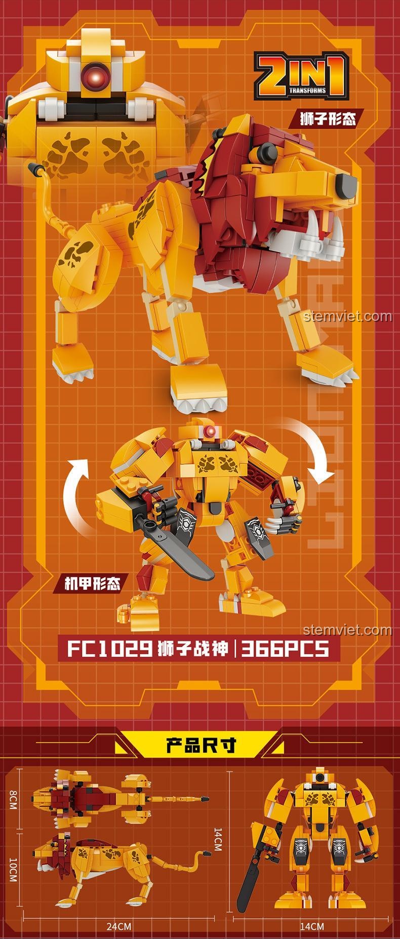 Forange FC1029 – Bộ lắp ghép Chiến Thần Biến Hình: Sư Tử Chiến Thần Với Biến Hình 2 Trong 1 Độc Đáo