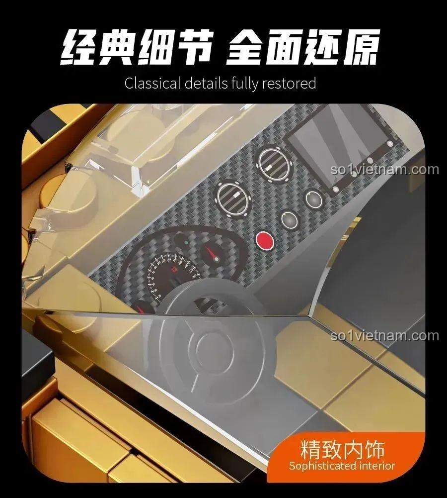 • Nội thất chi tiết: Khoang lái được thiết kế tỉ mỉ với vô lăng, bảng điều khiển, ghế ngồi, tạo cảm giác như một chiếc xe thật thu nhỏ.