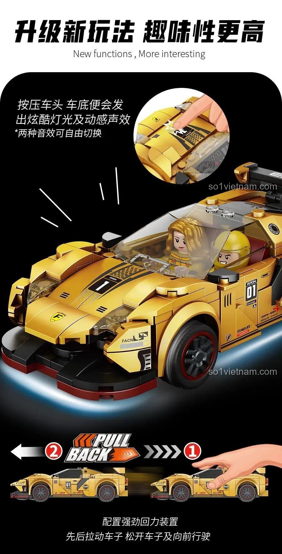 Bộ lắp ráp Forange FC1614 gây ấn tượng mạnh mẽ với thiết kế mô phỏng chân thực Siêu xe Lamborghini Aventador Vàng. Với 287 mảnh ghép chất lượng cao, mô hình này sở hữu: