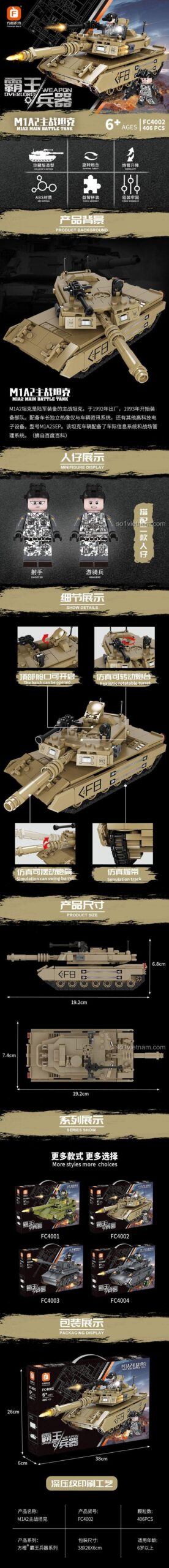 Forange FC4002: Xe Tăng M1A2 406 Mảnh – Vũ Khí Tối Thượng, Bắn Đạn Nhựa, Chất Lượng Cao, Giá Tốt Cho Bé 6+ – Mua Ngay!
