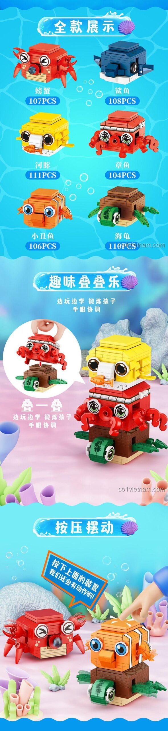 - Phát triển sự sáng tạo và trí tưởng tượng: Bé có thể tự do biến tấu, sáng tạo thêm các chi tiết hoặc kết hợp các mô hình để tạo ra câu chuyện đại dương của riêng mình.