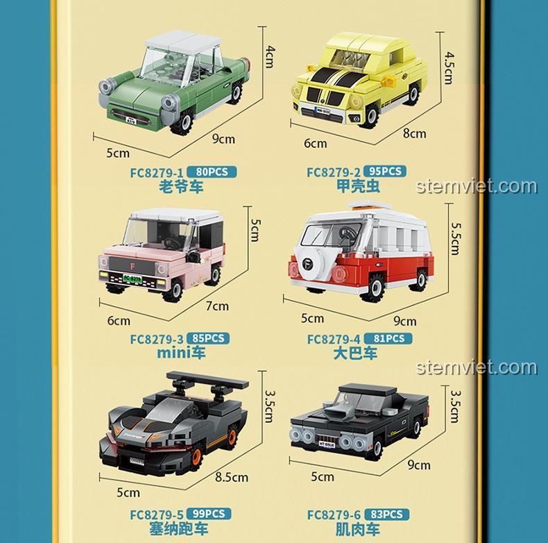 Hỡi các ông bố bà mẹ đang tìm kiếm một món quà vừa vui, vừa bổ ích cho cậu con trai 6 tuổi của mình, hãy dừng chân lại đây! Bạn có muốn thấy bé reo lên sung sướng khi sở hữu không chỉ một, mà là cả một bộ sưu tập 12 chiếc xe hơi huyền thoại phiên bản mini siêu cấp đáng yêu không? Bộ lắp ráp Forange FC8279 chính là câu trả lời, một thế giới tốc độ thu nhỏ, nơi những chiếc xe mang tính biểu tượng như Volkswagen Beetle, Porsche 911, hay ‘vua drift’ Toyota AE86 được tái hiện theo phong cách Q-style (chibi) ngộ nghĩnh, sẵn sàng cho những cuộc đua đầy trí tưởng tượng.