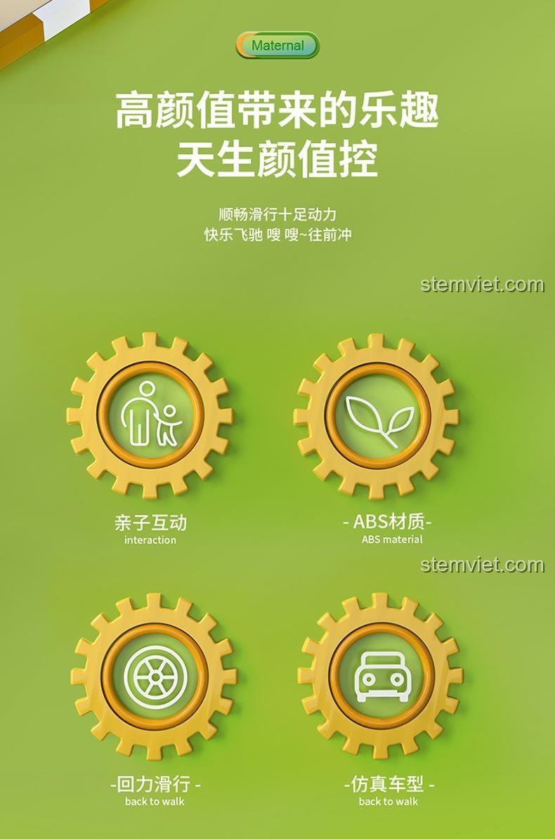 Tuyệt đối an toàn. Sản phẩm được làm từ nhựa ABS cao cấp, đạt các tiêu chuẩn an toàn cho đồ chơi trẻ em. Các chi tiết được xử lý nhẵn mịn, không có gờ sắc cạnh, đảm bảo an toàn tối đa cho bé khi chơi.