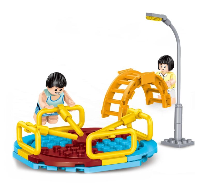Điểm nhấn độc đáo nhất của bộ lắp ghép Royal Toys RT61 Vòng Xoay Sân Chơi Thập Niên 80 chính là vòng xoay có thể quay một cách mượt mà. Tính năng đặc biệt này mang lại trải nghiệm chơi tương tác đầy thú vị, giúp bé hình dung rõ hơn về hoạt động của một sân chơi thực thụ. Hai minifigure bé trai và bé gái có thể được đặt lên vòng xoay, và bé có thể tự tay xoay để tạo ra những chuyển động vui nhộn, mô phỏng cảnh các bạn nhỏ đang nô đùa. Ngoài ra, chiếc cầu trượt và đèn đường cũng góp phần tạo nên một không gian chơi đa dạng, khuyến khích bé sáng tạo các kịch bản chơi khác nhau. Bộ đồ chơi lắp ráp RT61 này sử dụng kiểu chi tiết tương thích LEGO®, cho phép bé dễ dàng kết hợp với các bộ đồ chơi khác mà bé đang có, mở rộng không gian và khả năng sáng tạo không giới hạn. Bé sẽ không bao giờ cảm thấy nhàm chán với những tính năng đơn giản nhưng đầy cuốn hút này.