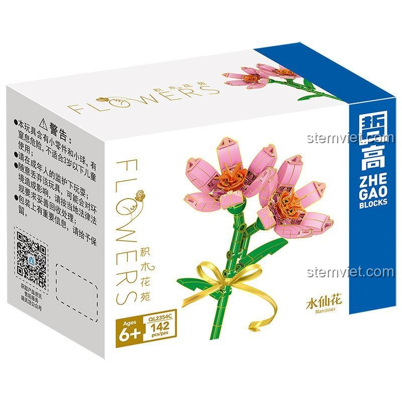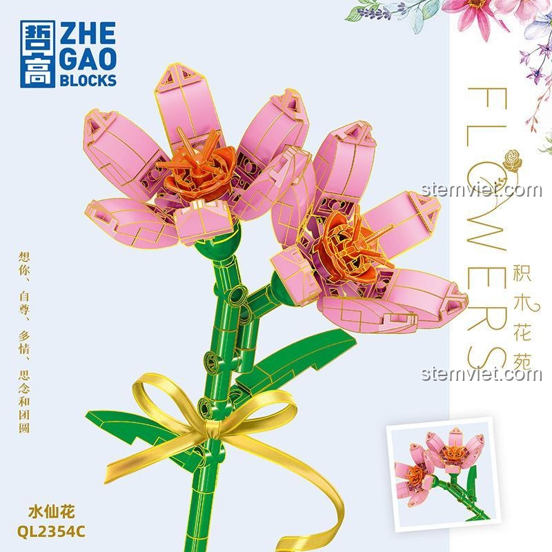 Bộ lắp ghép ZHEGAO QL2354C Hoa Thủy Tiên Hồng (142 mảnh) – Sắc Hồng Tinh Tế và Mô hình trang trí