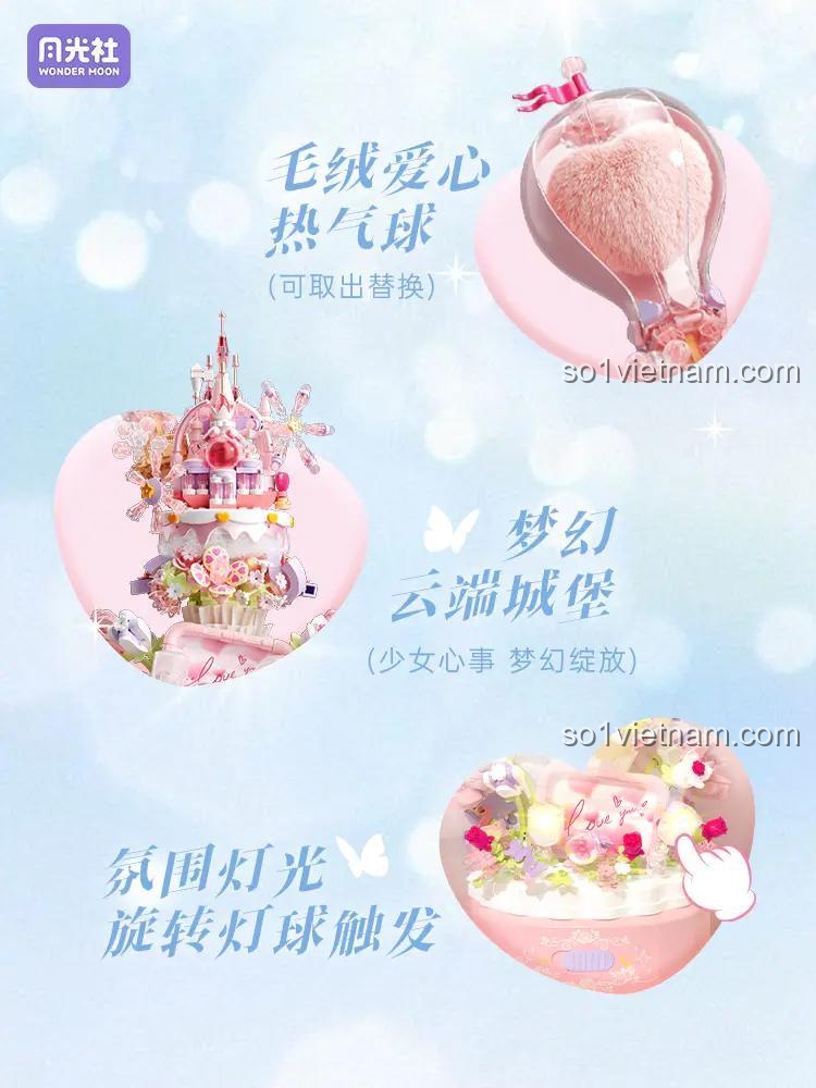 Gửi đến cô gái 14 tuổi mộng mơ, đã bao giờ bạn tưởng tượng về một lâu đài trên mây, nơi những câu chuyện cổ tích trở thành sự thật và tình yêu được chắp cánh bay cao? Wonder Moon 804266 không chỉ là một món đồ chơi, nó là một lời thì thầm, một câu chuyện tình yêu được kể bằng những mảnh ghép mini block tinh xảo. Lấy cảm hứng từ những lời tỏ tình ngọt ngào nhất, bộ lắp ghép này tái hiện một thế giới lãng mạn, nơi có tòa lâu đài tráng lệ ngự trên những tầng mây bồng bềnh, bên cạnh là chiếc khinh khí cầu trái tim sẵn sàng chở những ước mơ bay xa. Mỗi chi tiết đều được thiết kế để khơi gợi cảm xúc, biến quá trình lắp ráp thành một hành trình khám phá tình yêu và vẻ đẹp. Đây là món quà hoàn hảo để bạn tự thưởng cho mình một góc mộng mơ, hoặc để một chàng trai nào đó gửi gắm tấm chân tình đến người thương, biến những lời khó nói thành một giai điệu hữu hình, một tác phẩm nghệ thuật có thể ngắm nhìn mỗi ngày.