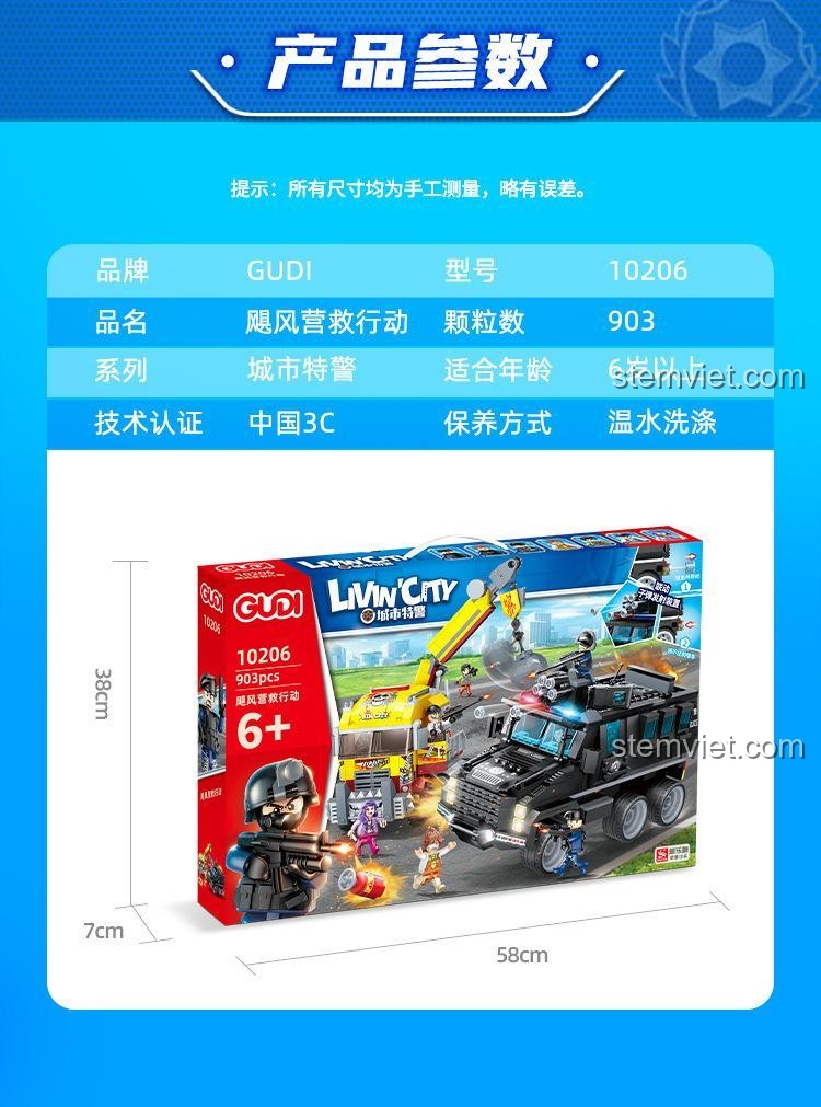 Với GUDI 10206, mỗi lần lắp ráp là một lần bé khám phá thêm một câu chuyện mới, một thử thách mới, giúp bé phát triển trí tưởng tượng và khả năng sáng tạo không giới hạn.