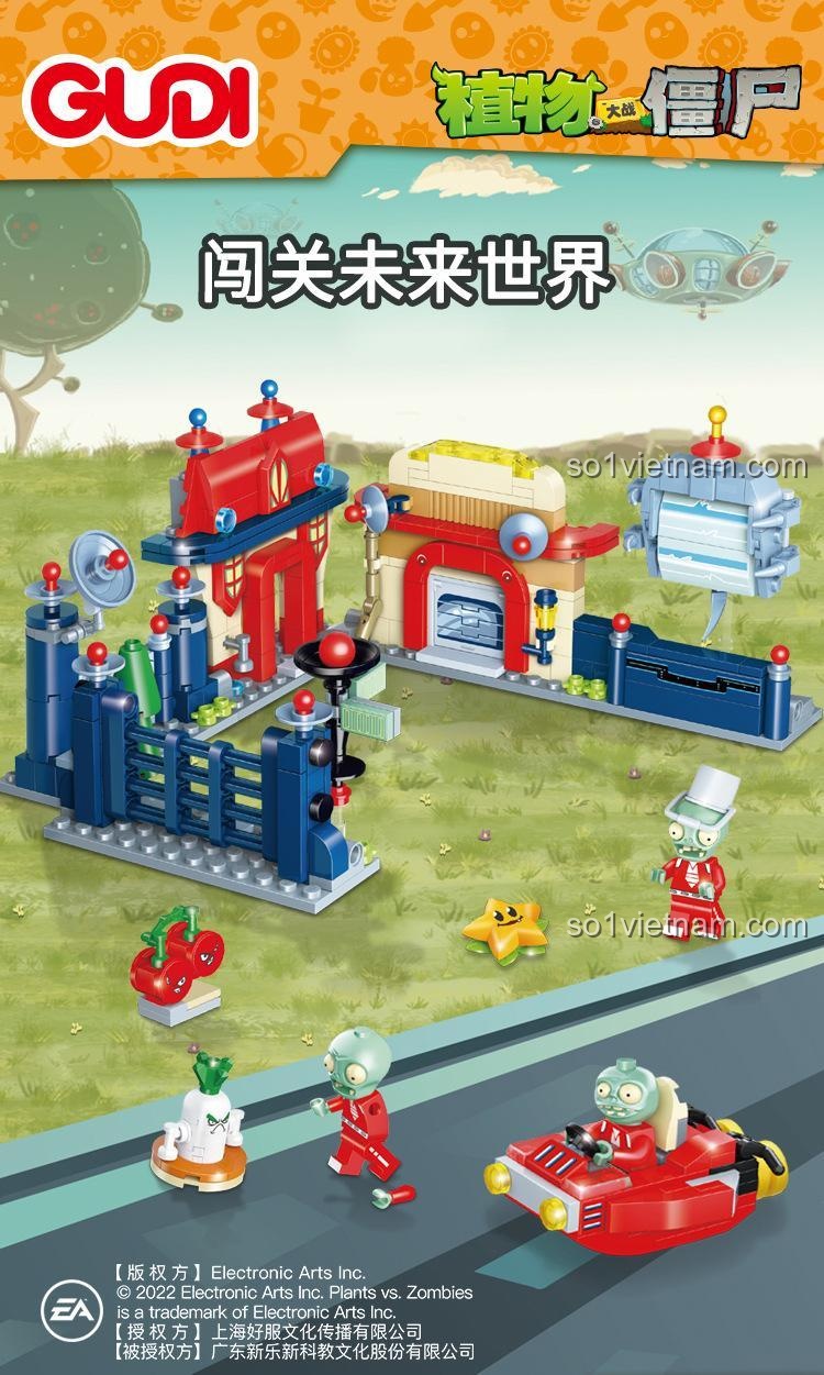 GUDI 60020: Bộ Lắp Ghép Cảnh Quan Tương Lai Plants vs. Zombies (713 Mảnh)