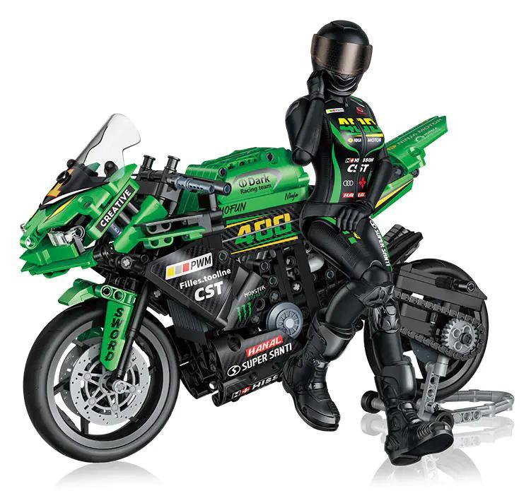 Mô hình xe máy GUDI 70006 có thiết kế chân thực, mô phỏng xe Kawasaki Ninja H2R, đi kèm figure Ninja, hệ thống lái linh hoạt và các chi tiết cơ khí có thể hoạt động.