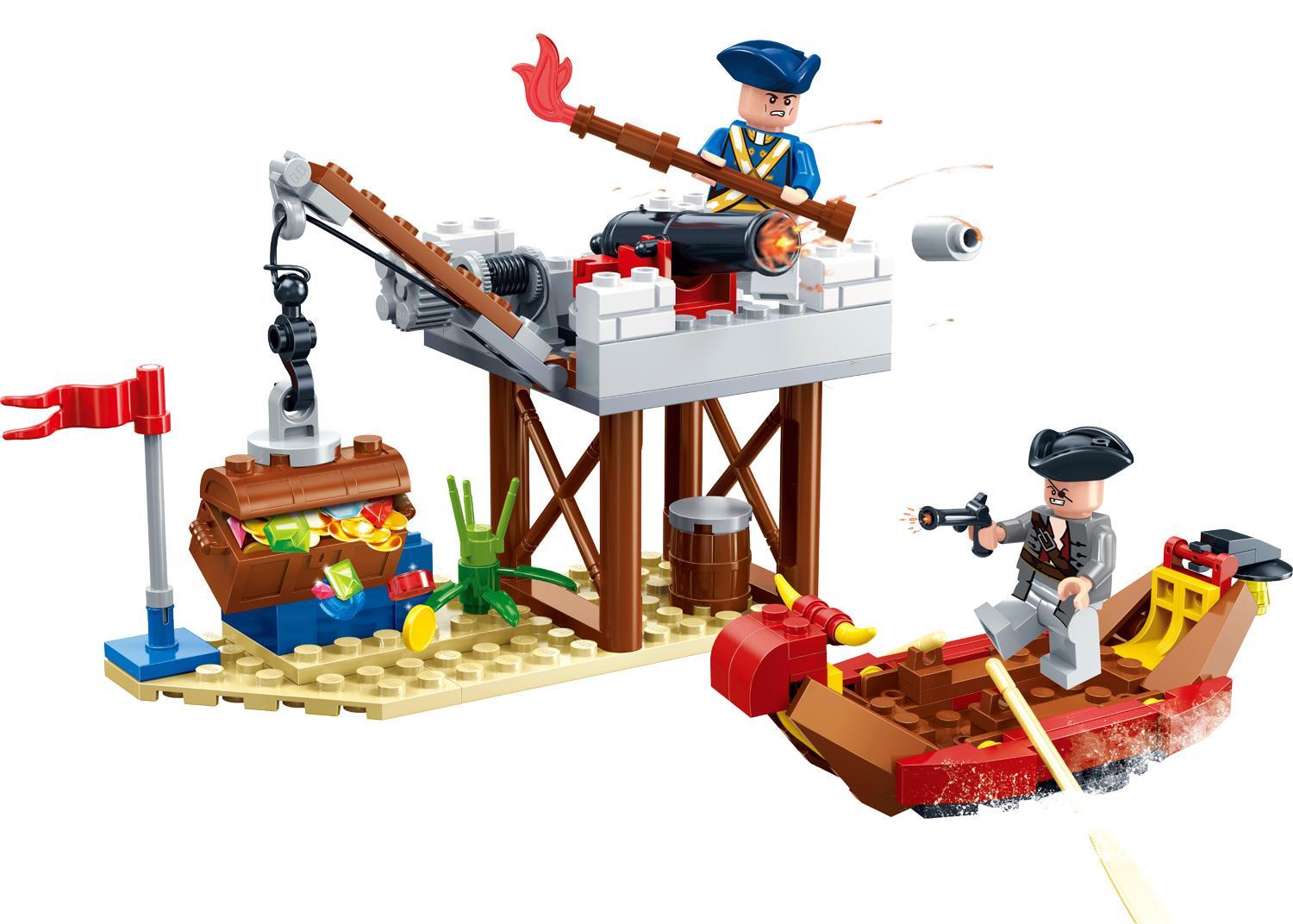 Điều gì làm cho bộ đồ chơi GUDI 9108 trở nên đặc biệt và khác biệt? Đó chính là tính năng tương tác cực kỳ thú vị! Khẩu đại pháo trên tháp canh không chỉ để trưng bày, nó thực sự có thể bắn ra những viên đạn hình trụ đi kèm. Bé chỉ cần nạp đạn, nhấn lẫy và BÙM! Viên đạn sẽ bay xa tới vài mét, mang lại cảm giác phấn khích tột độ. Bé có thể ngắm bắn chiếc thuyền của tên cướp biển, tạo ra những trận chiến giả tưởng đầy kịch tính. Ngoài ra, chiếc cần cẩu cũng có thể hoạt động, bé có thể dùng nó để nâng rương kho báu lên khỏi mặt đất, cất giấu hoặc di chuyển nó. Với 2 minifigures và đầy đủ vũ khí, phụ kiện, bé có thể thỏa sức sáng tạo hàng trăm kịch bản khác nhau. Liệu tên cướp biển có cướp được kho báu? Hay người lính gác sẽ bảo vệ thành công phòng tuyến? Tất cả phụ thuộc vào trí tưởng tượng của bé!