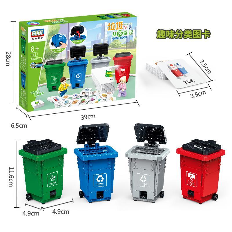 GUDI 9521: Bộ Lắp Ráp Phân Loại Rác (482 Chi Tiết) – Bảo Vệ Môi Trường