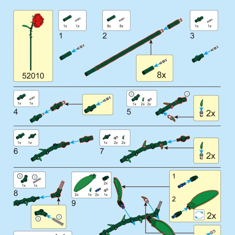 Sở hữu ngay Sách Hướng Dẫn Lắp Ráp DECOOL 52010 Bó Hoa Hồng PDF gốc chất lượng cao từ nhà sản xuất. Giải pháp hoàn hảo cho những ai bị mất hoặc thiếu sách hướng dẫn lắp ghép DECOOL 52010 Quà tặng Hoa Hồng. Tải về file PDF chi tiết, sắc nét, dễ dàng zoom từng bước để hoàn thiện mô hình Hoa Hồng Bất Tử của bạn.